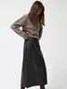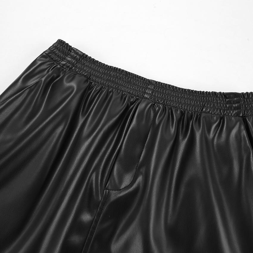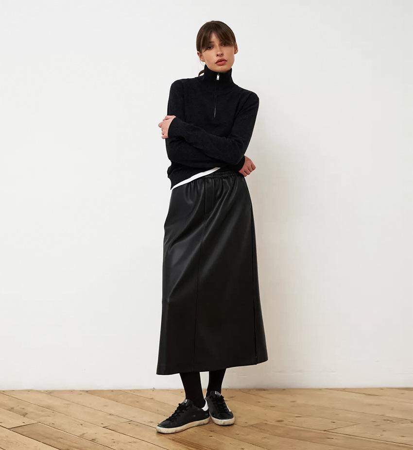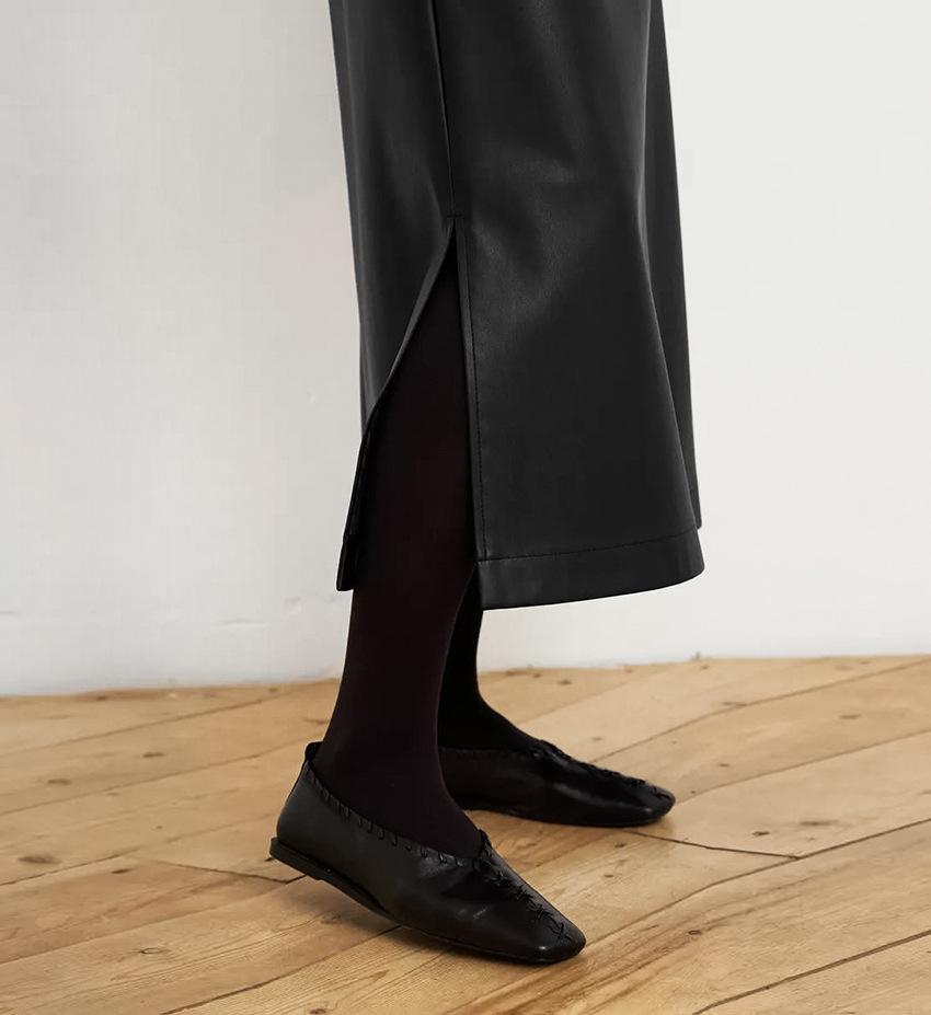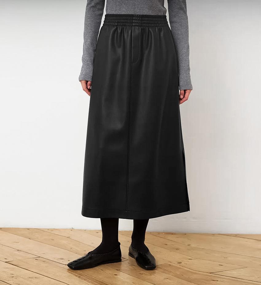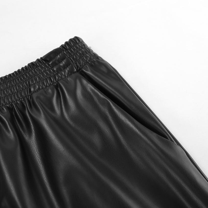 Falda sexy con abertura A de piel sintética mate forrada de vellón falda de cuero 2024 moda europea y americana otoño e invierno vestido para mujer