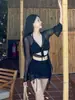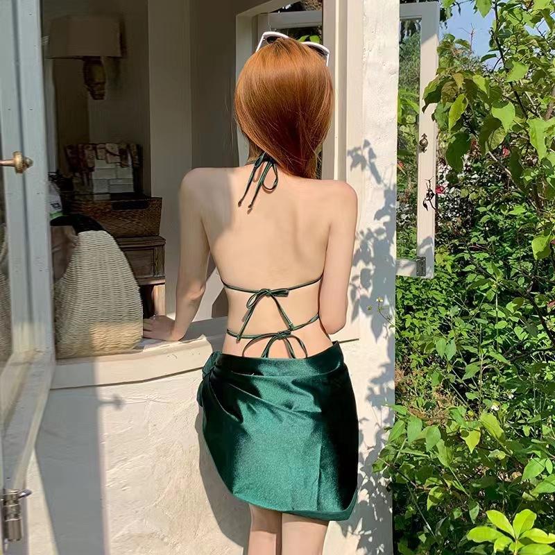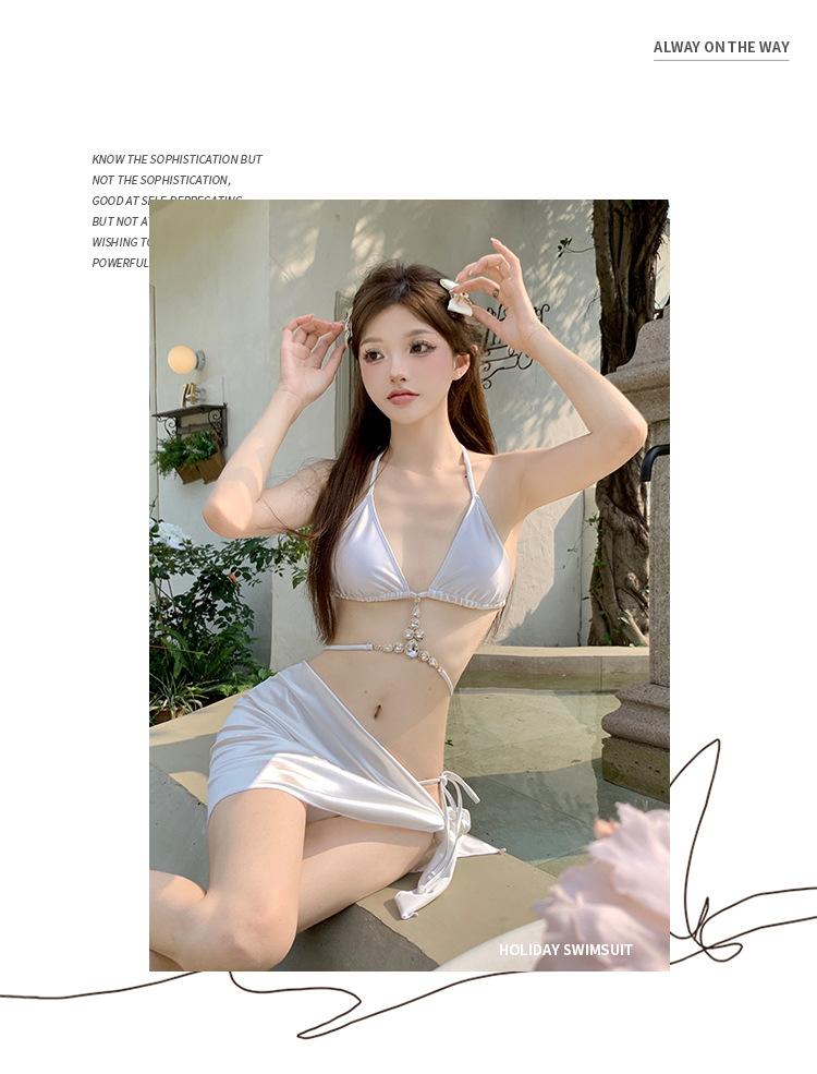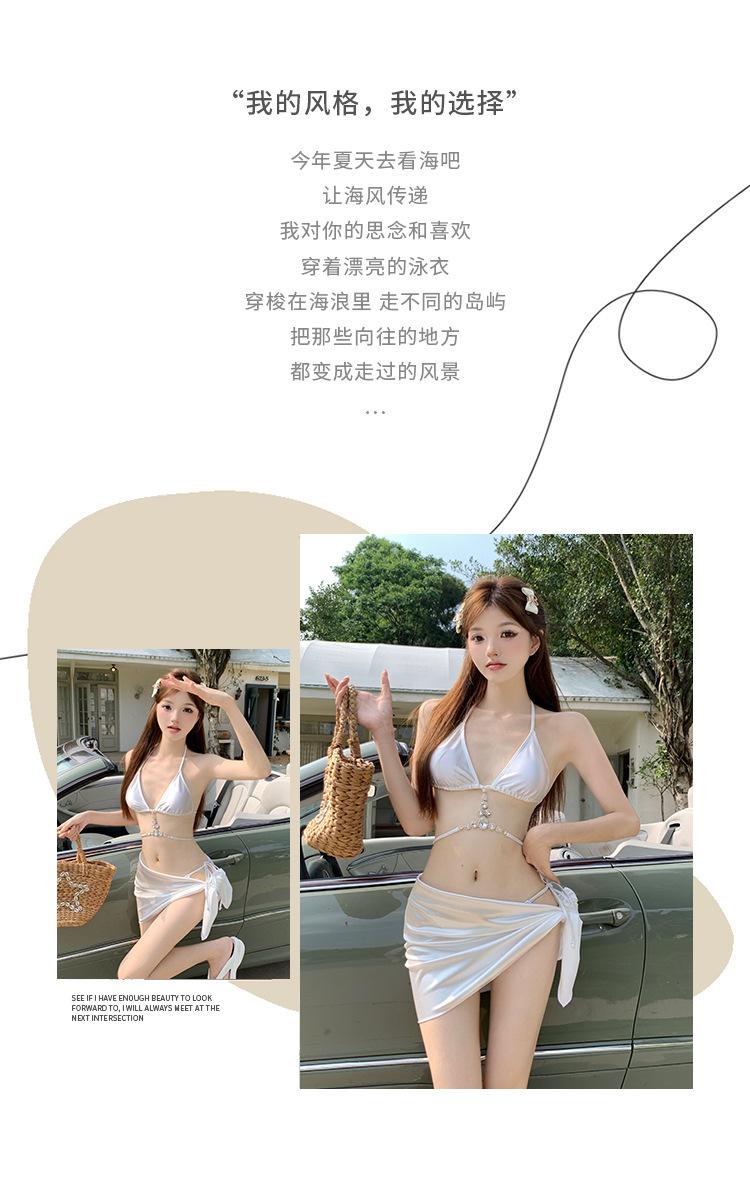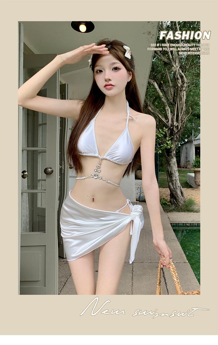 Traje de baño de verano para mujer, bikini sexy de tres piezas con tirantes de diamantes de imitación y cuello, ideal para playa, vacaciones en aguas termales.