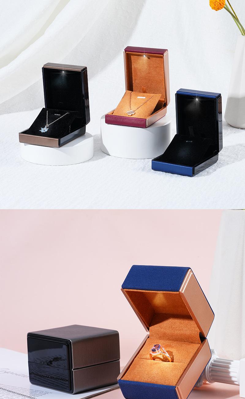 Caja de embalaje de joyería LED de alta calidad con caja de exhibición de luz, caja de almacenamiento de joyería en stock, caja de joyería creativa para collar y anillo