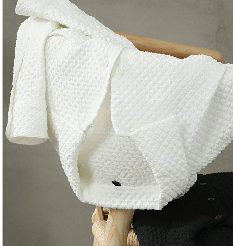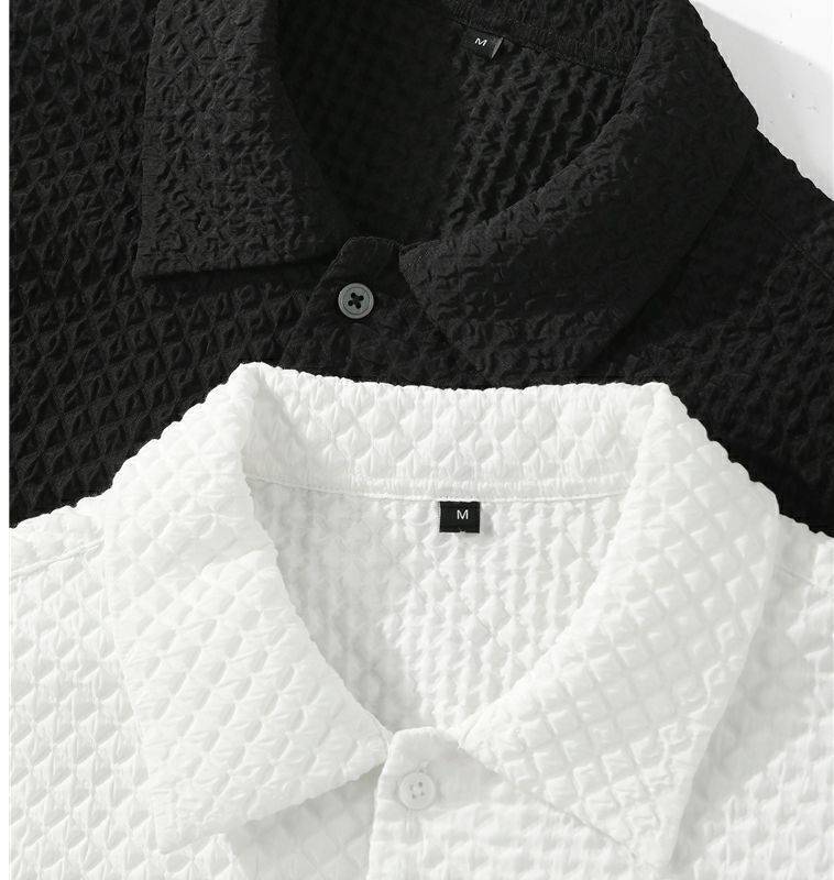 Camisa de otoño e invierno 2023 con solapa y textura de partículas para hombre, informal, moderna, de color sólido, combina con todo