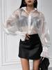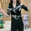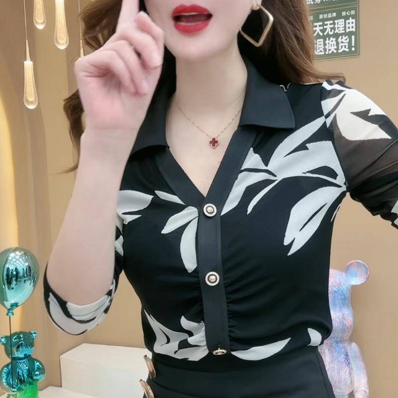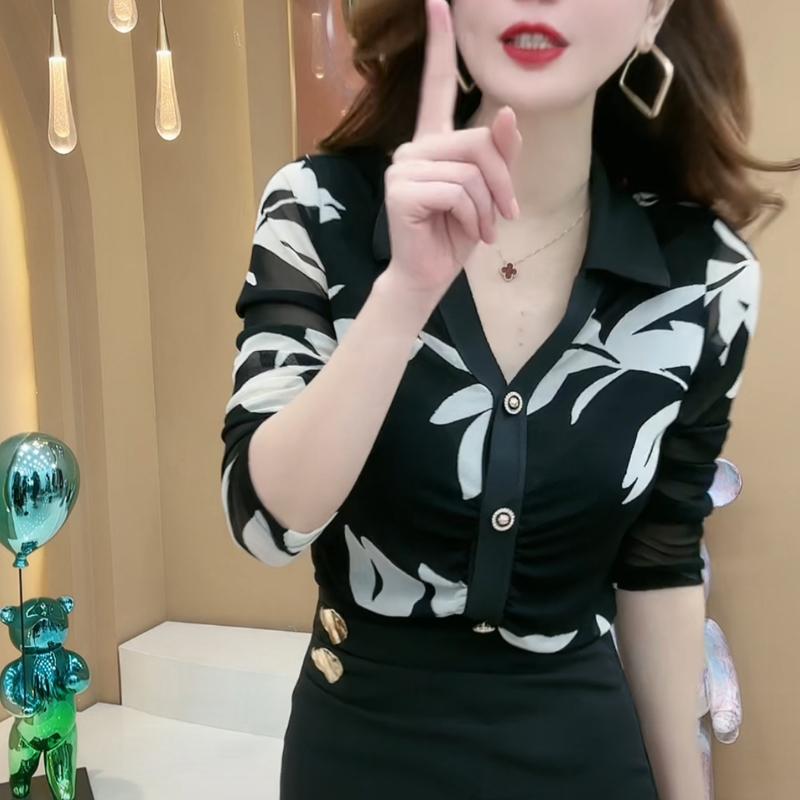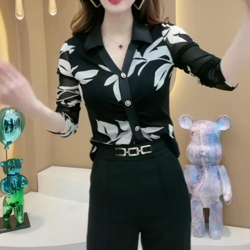Camisa Francesa de Manga Larga con Estampado en la Cintura para Mujer 2025 Otoño Malla Venta al por Mayor Diseño de Camisa Chic