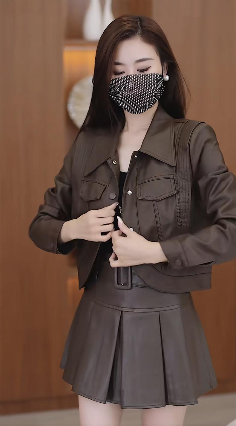 Black clothes, Brown clothes, Black leather skirt, Brown leather skirt