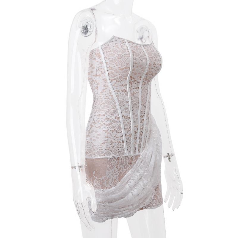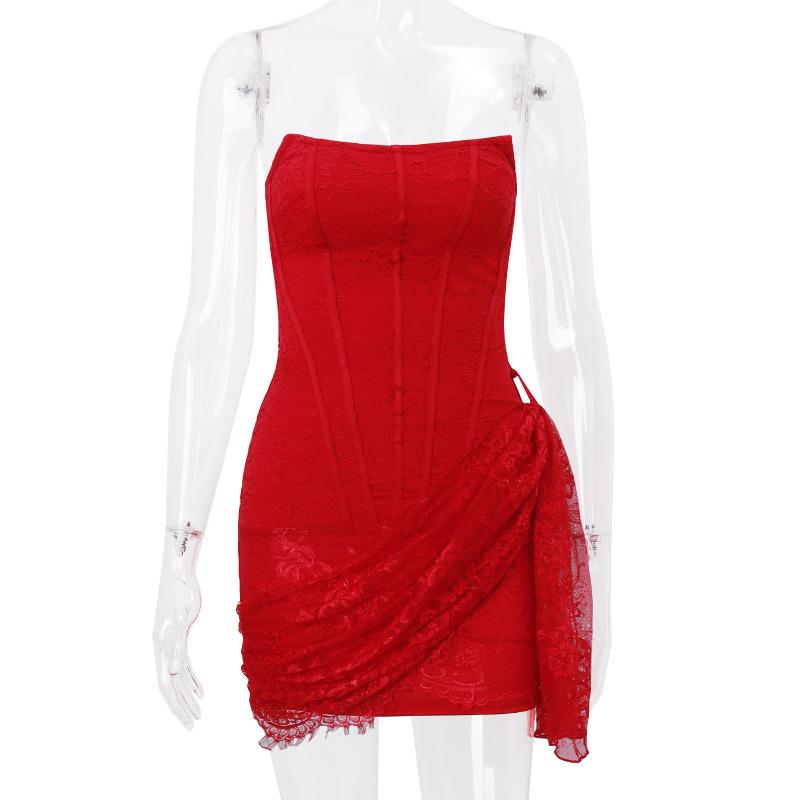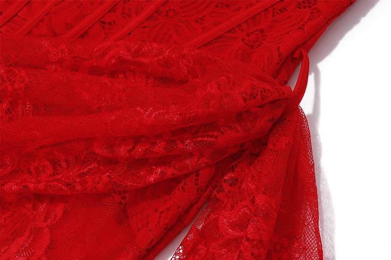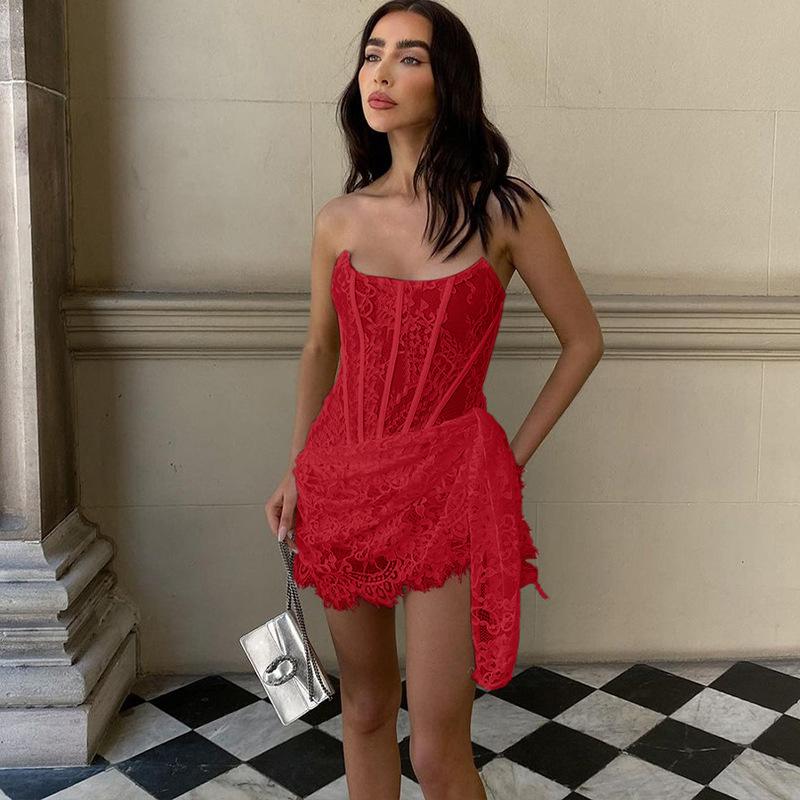 5397A Moda Transfronteriza Europea y Americana Ropa de Mujer Sexy Hombro Descubierto Socialité Encaje de Alta Gama Adelgazante Vestido Deseo Puro