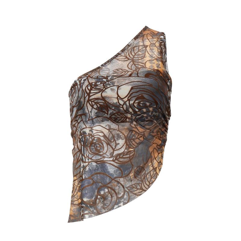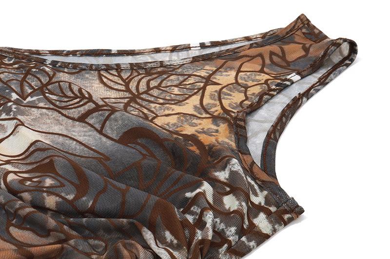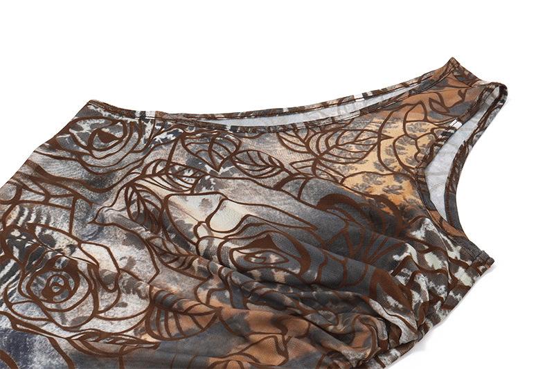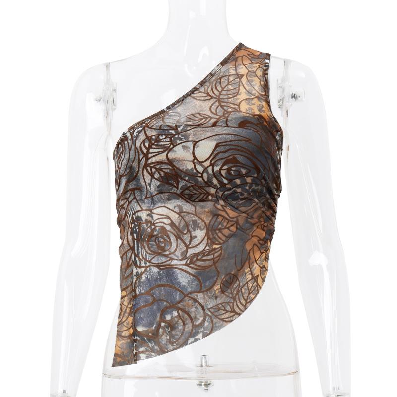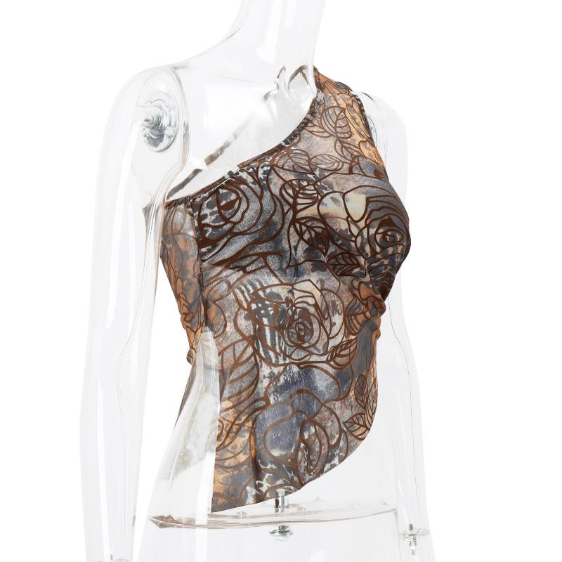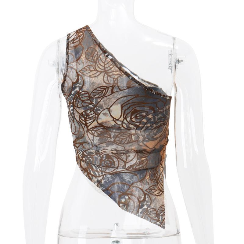 4899A Estilo Europeo y Americano Verano Moda Femenina Sexy Sexy Asimétrico Hombro Inclinado Retro Estampado Chaleco Ajustado para Mujer