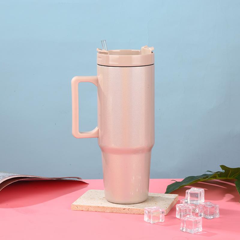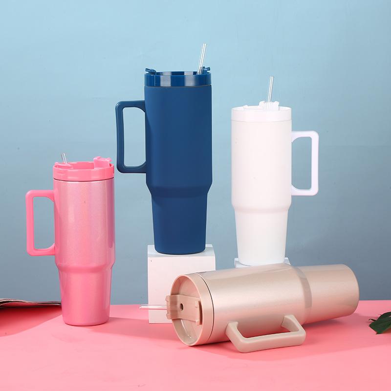 Vaso de vacío de acero inoxidable de gran capacidad transfronterizo, venta al por mayor, portátil, con asa, para coche, taza gigante de 40 oz