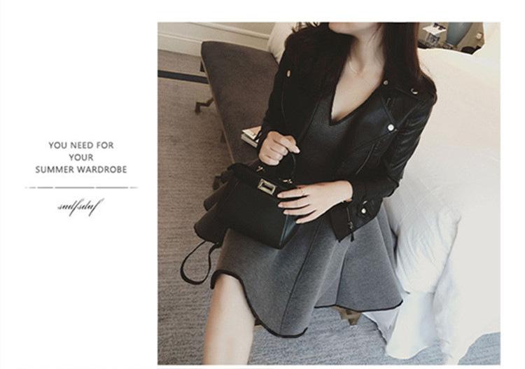 2025 Primavera y Otoño Nuevo Chaqueta de Cuero Haining para Mujer Corta Estilo Coreano Ajustada Motocicleta Pu para Mujer Talla Grande Chaqueta de Cuero Pequeña