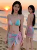 Traje de baño de verano para mujer, bikini sexy adelgazante rosa y azul de tres piezas dividido para vacaciones en aguas termales junto al mar.