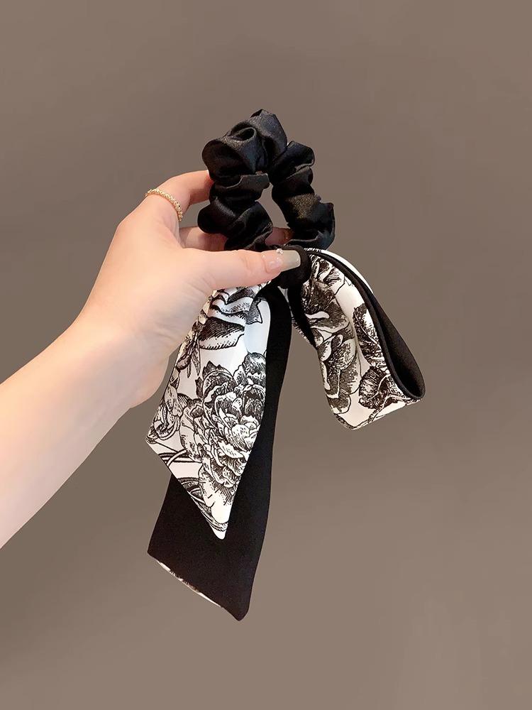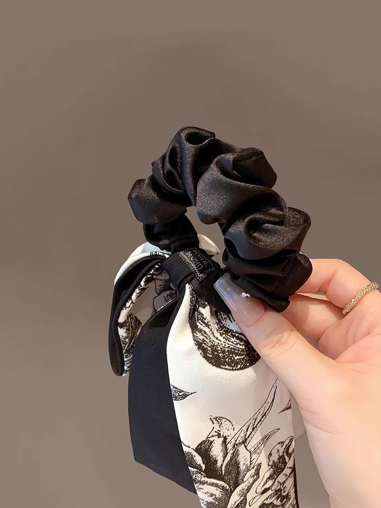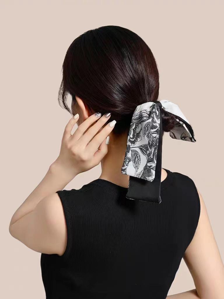 Nuevo Estampado de Tinta Chinoiserie Elegante Lazo para el Cabello de Cinta de Satén Accesorios para el Cabello Exquisito y Elegante Lazo para el Cabello Diadema Asimétrica Tocado