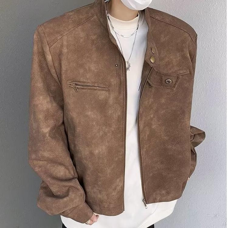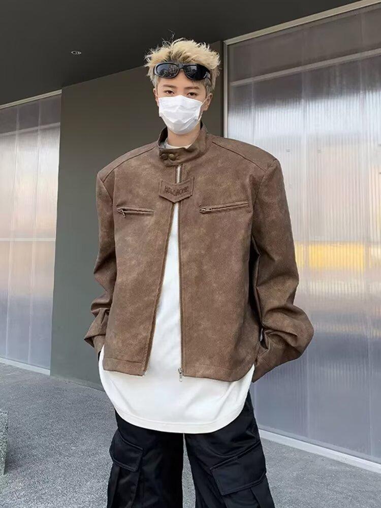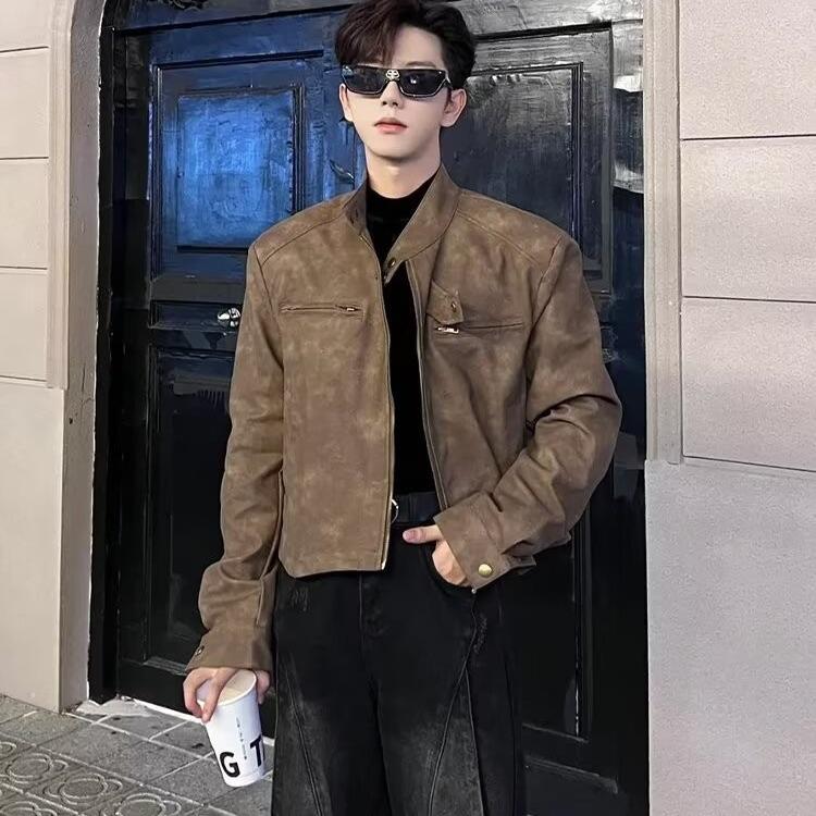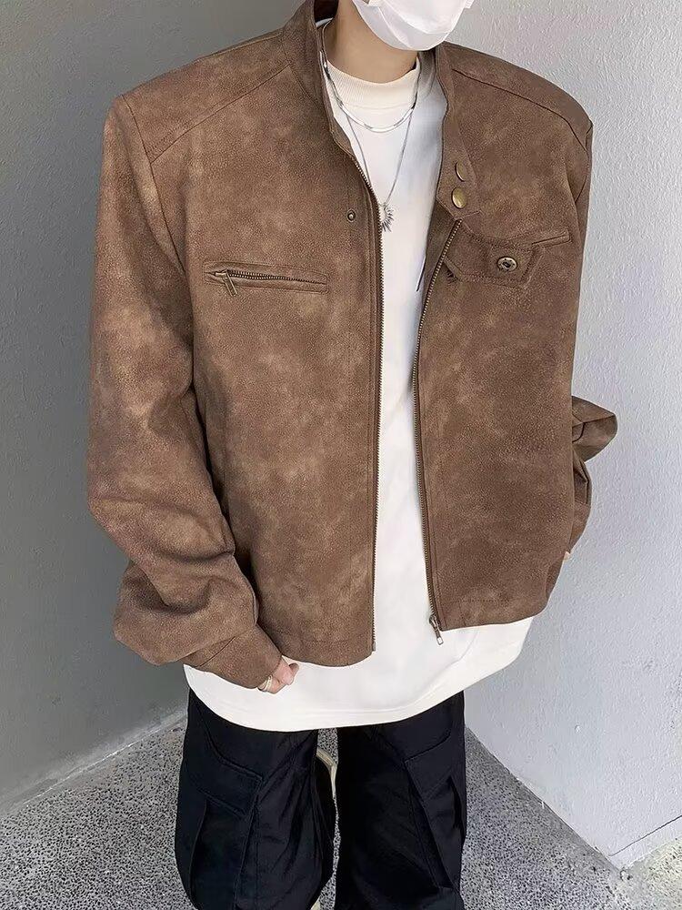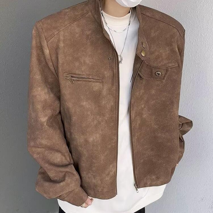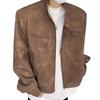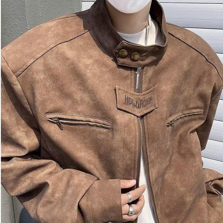 Chaqueta de cuero Maillard estilo americano vintage con cuello vertical y hombreras cortas, elegante chaqueta de alta gama para hombre y mujer, traje de motociclista