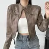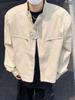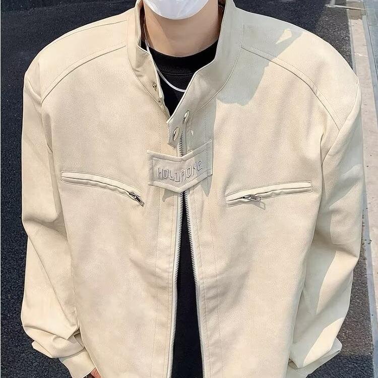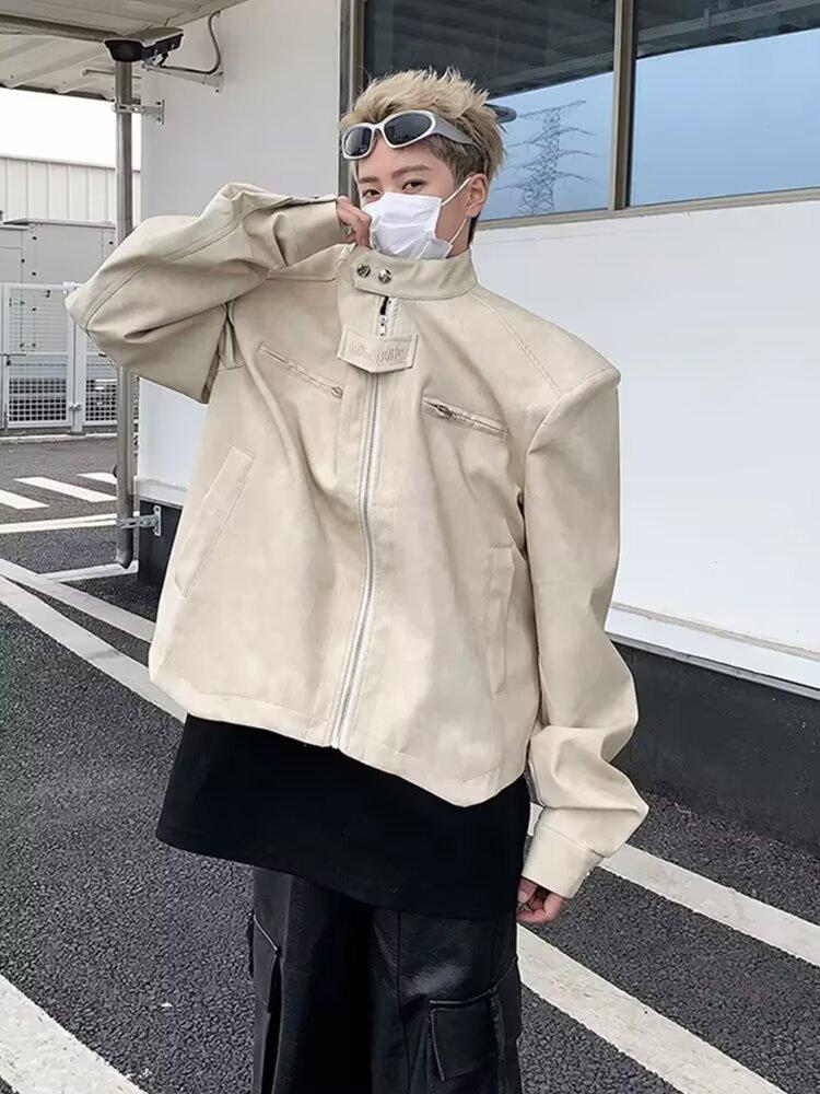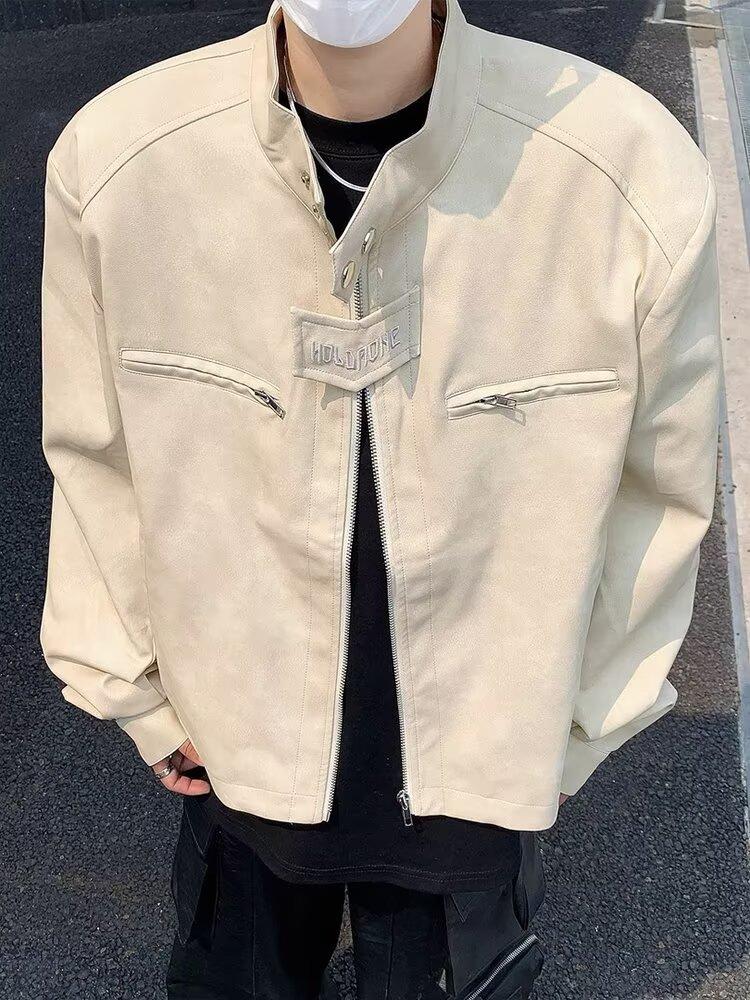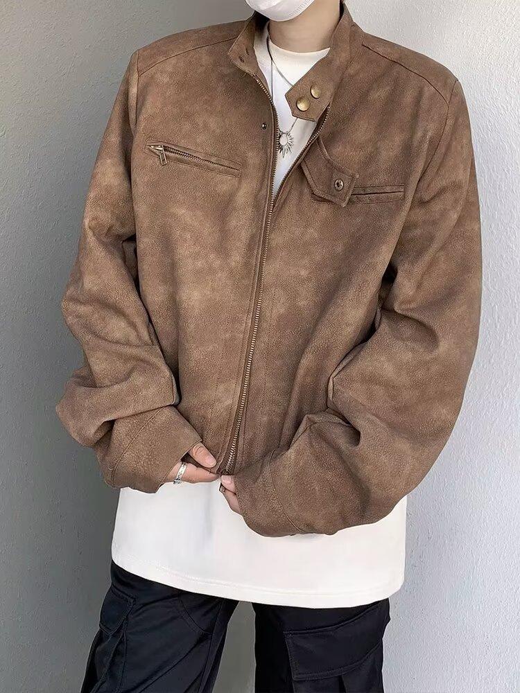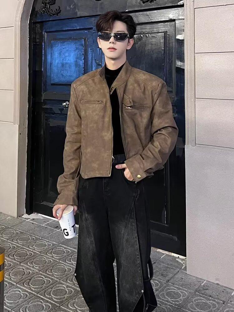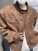 Chaqueta de cuero Maillard estilo americano vintage con cuello vertical y hombreras cortas, elegante chaqueta de alta gama para hombre y mujer, traje de motociclista