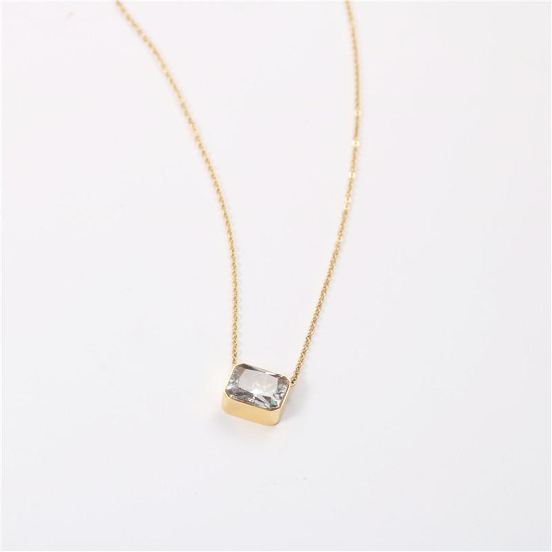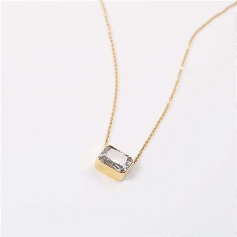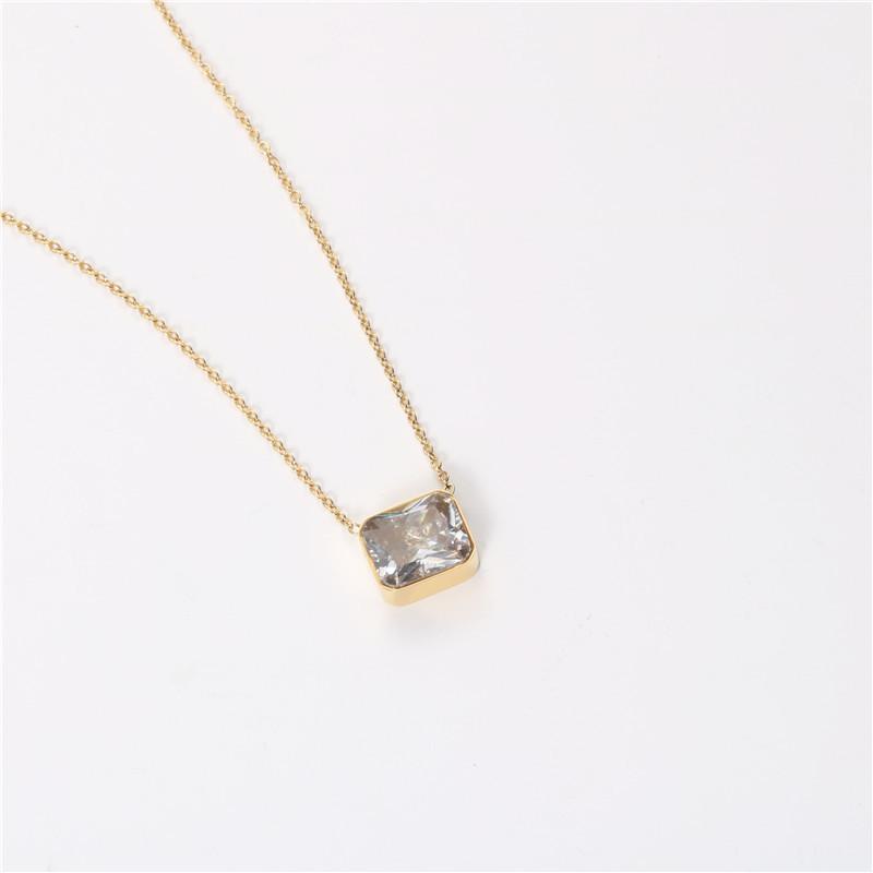 Collar de acero de titanio chapado en oro para mujer, diseño de diseñador, cadena de clavícula con gemas de circonita retro, estilo 2021.