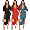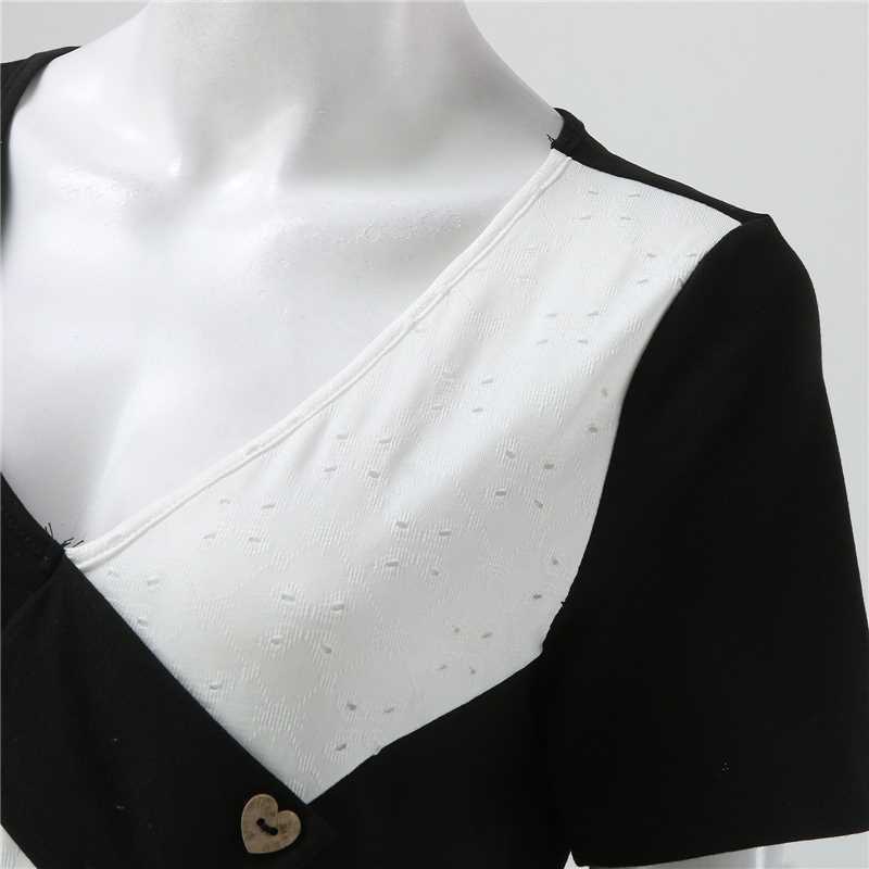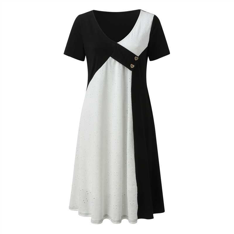 Vestido de manga corta con cuello cruzado y hebilla decorativa, nuevo, de comercio exterior de Amazon para mujer, 2024