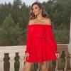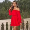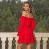 Vestido con volantes y mangas con volantes, hombros descubiertos, para mujer, moda 2024