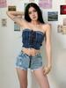 Pantalones rectos de mezclilla lavada de cintura baja de algodón azul, pantalones cortos de moda urbana, pantalones oscuros para mujer, pantalones sexys y calientes.