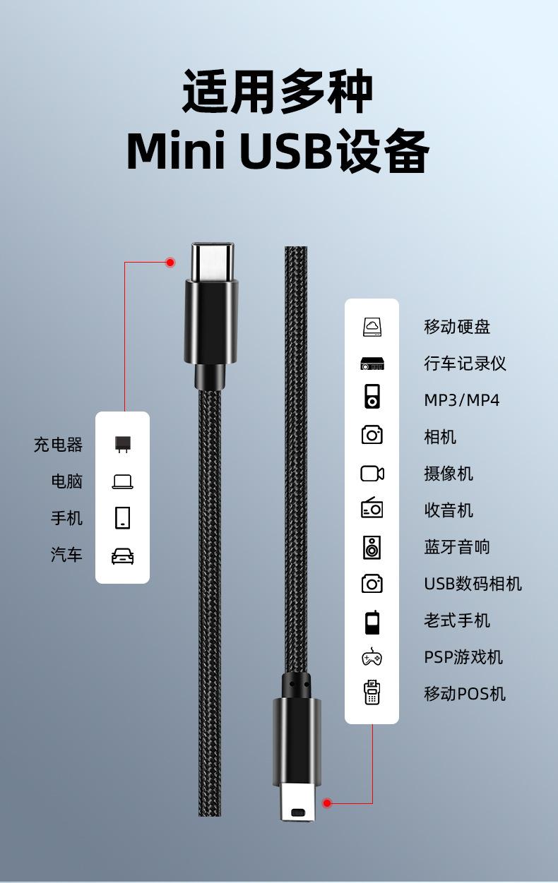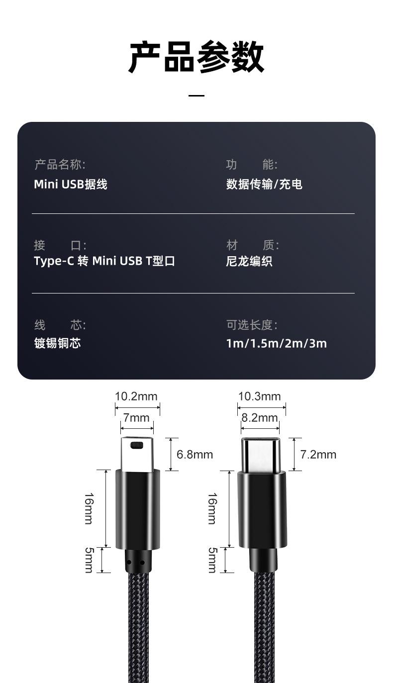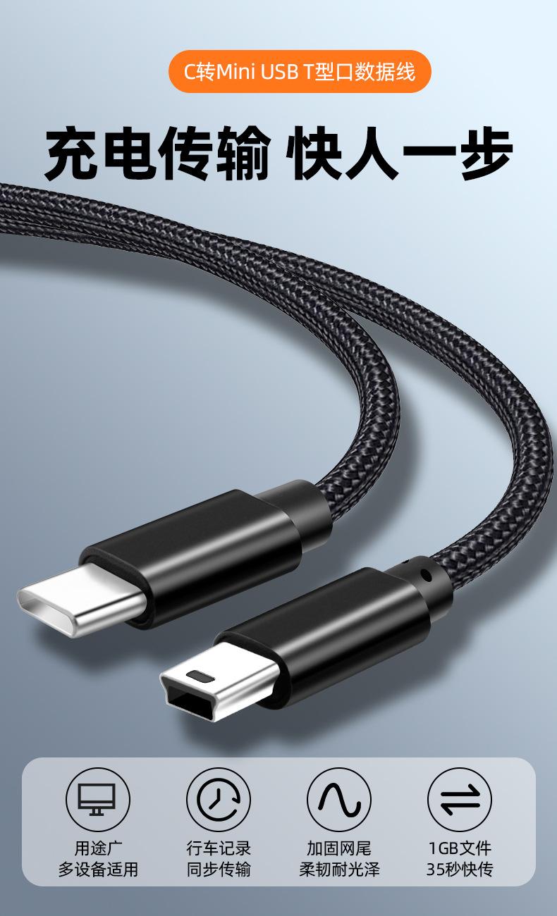 Cable de Datos Tipo C a Miniusb T-Port Adaptador para Laptop Cámara Caja de Disco Duro Cable de Datos de Conexión