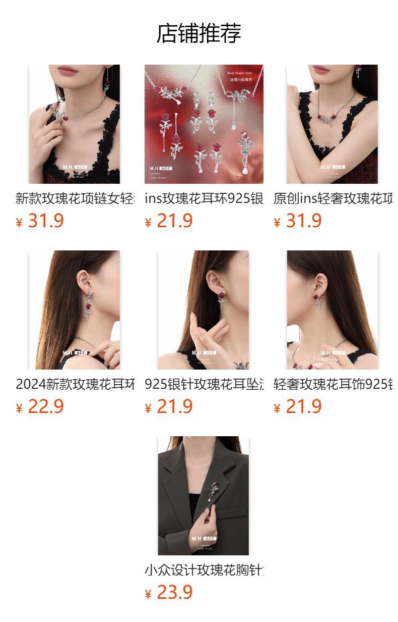 Rose earrings-re348362, Rose earrings-re349053, Rose earrings-re349054, Rose necklace-nk348341, Rose necklace-...