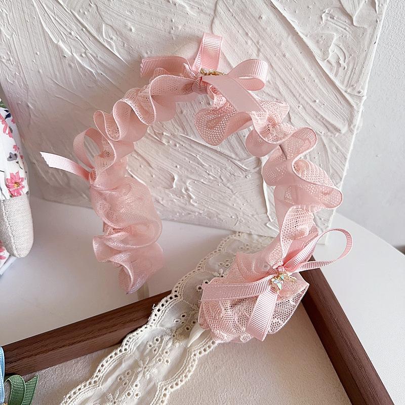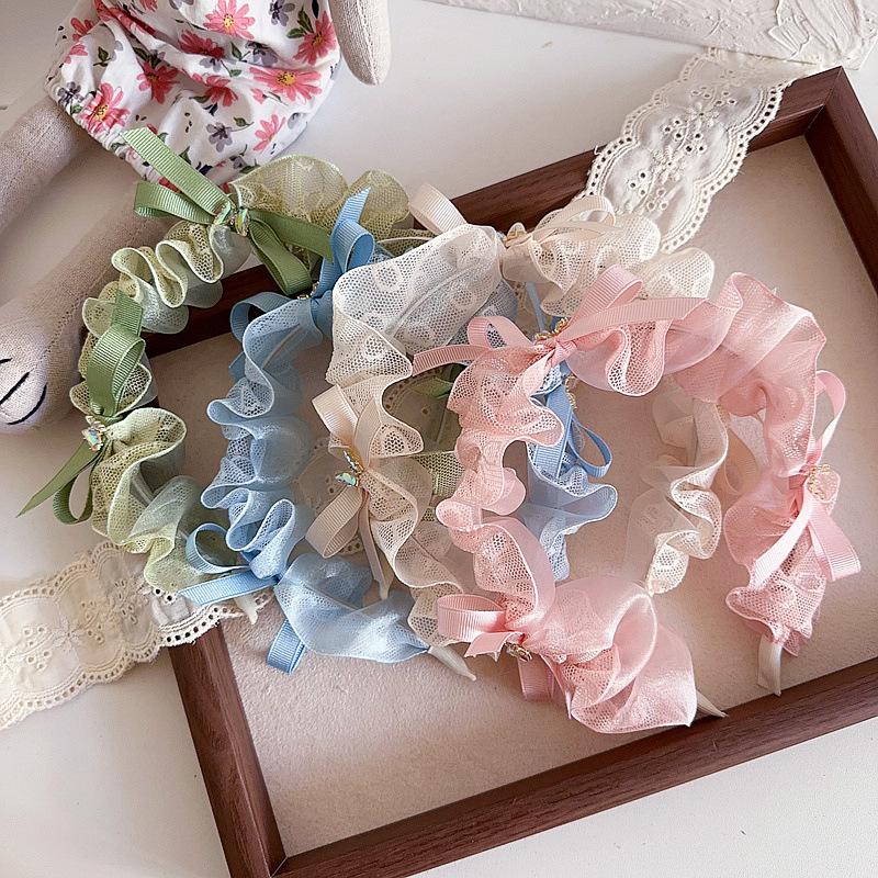 Nuevo estilo color macarrón crema fresca lindo lazo plisado diadema para el cabello de niña accesorios para el cabello tocado