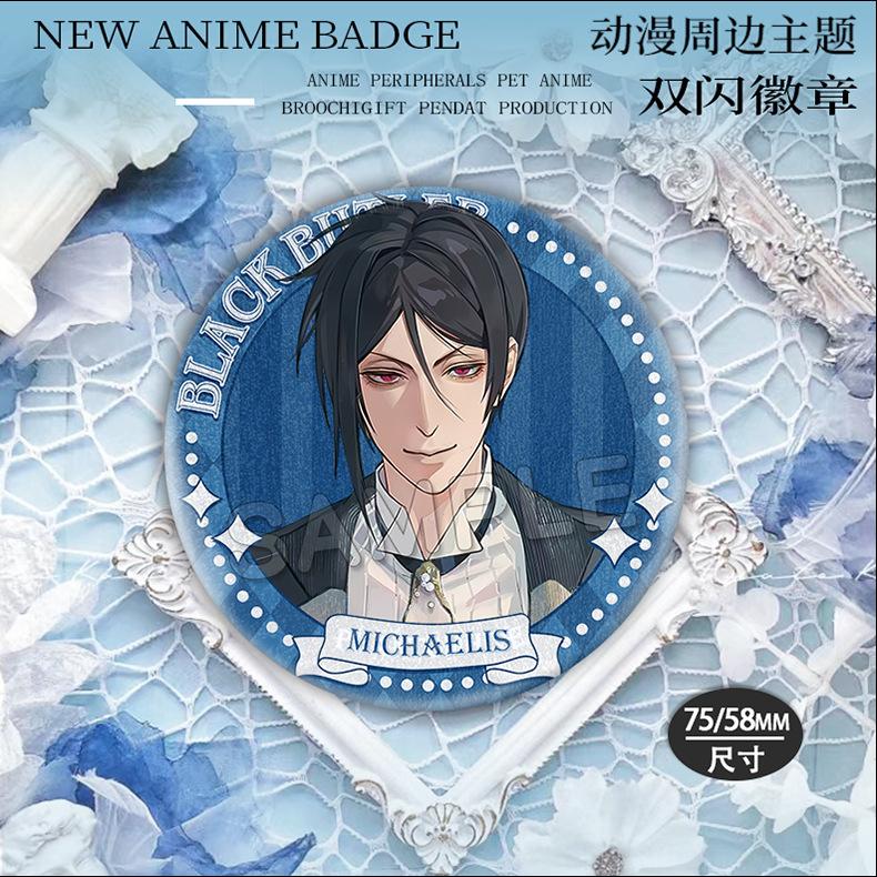 Animación del Diácono Negro que rodea a Sebastian Shire Insignia Doble Flash Segunda Dimensión Regalo para Estudiantes de Millet