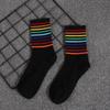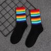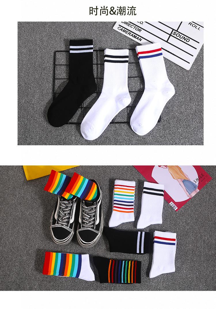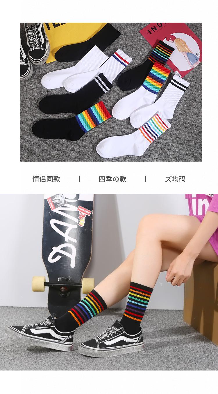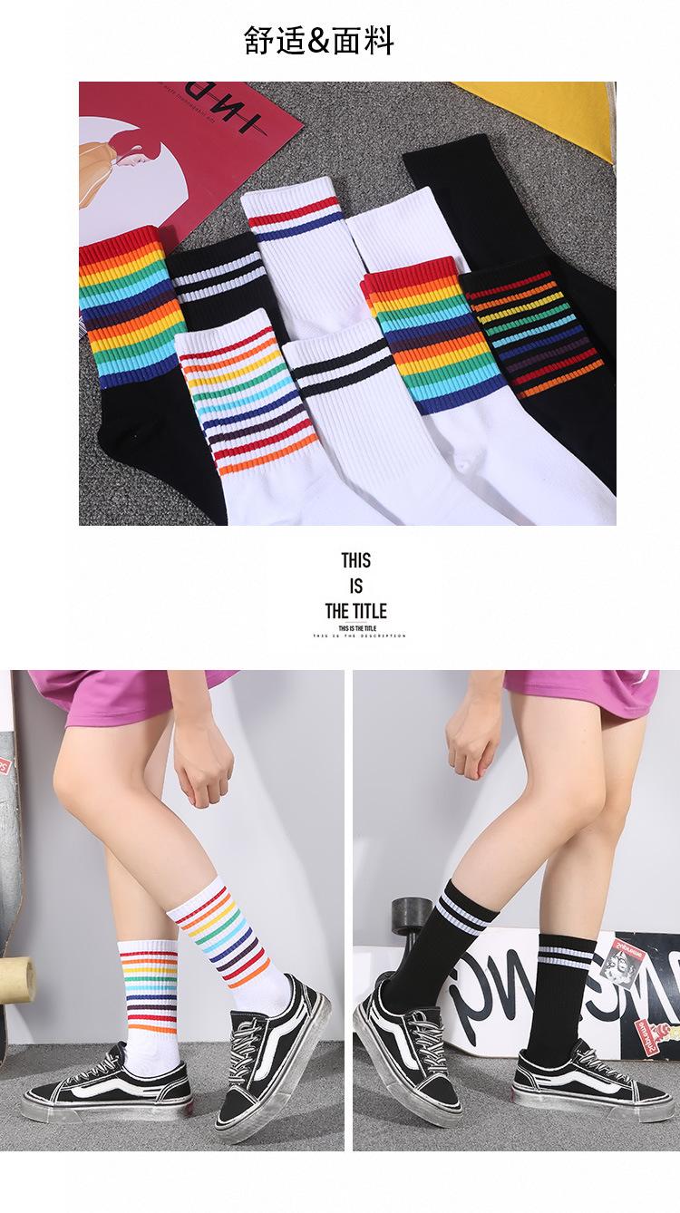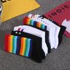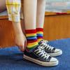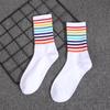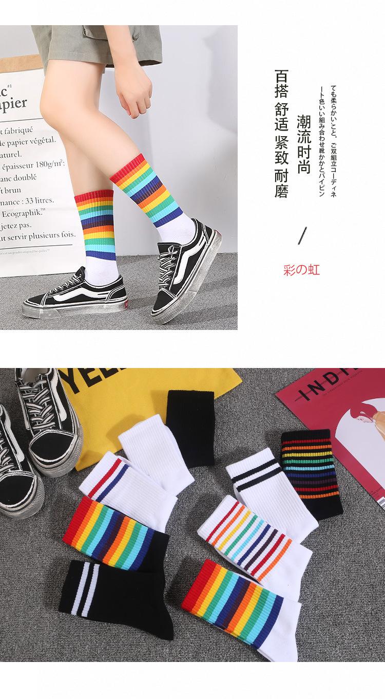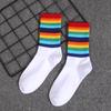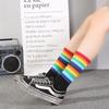 Calcetines de arcoíris rojos de red para mujer, calcetines de algodón a rayas, Corea del Sur, deportivos, estilo coreano, estilo preppy, calcetines de moda hasta media pantorrilla para niña