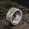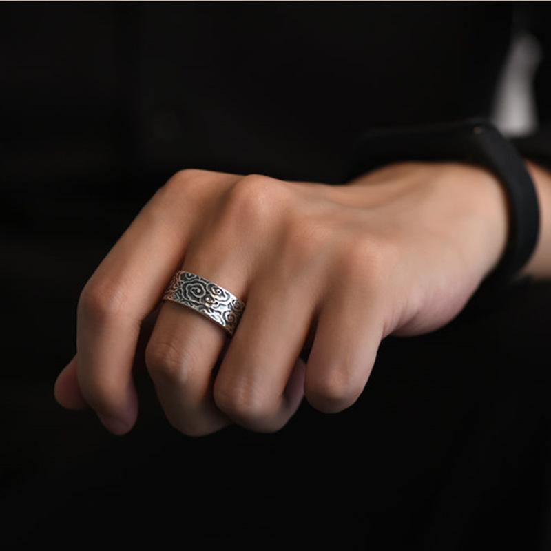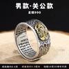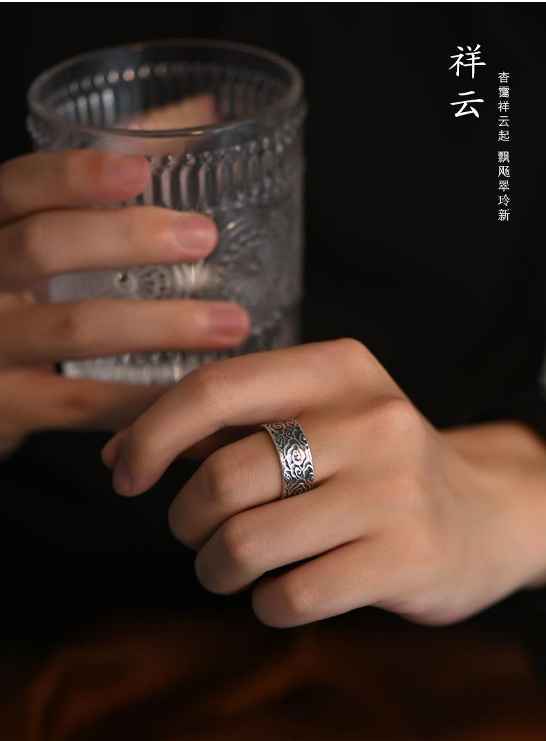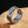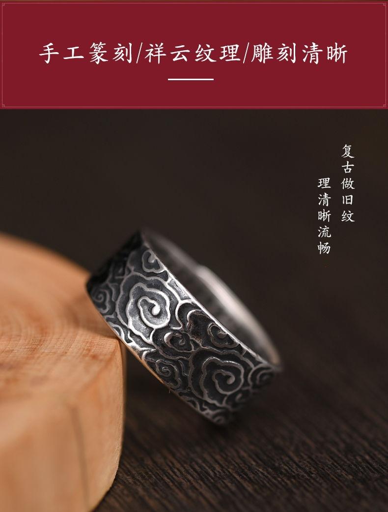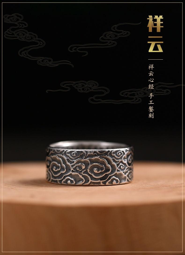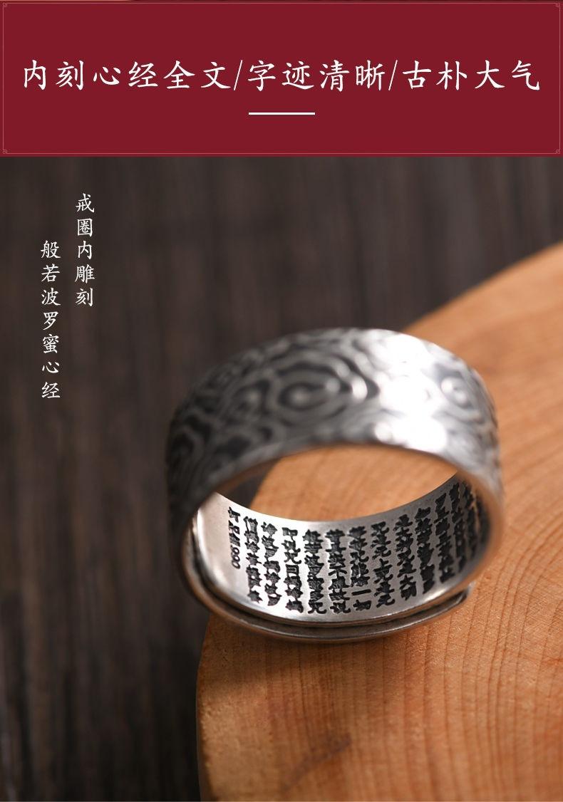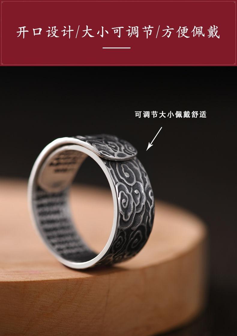 Anillo Qishang Guofeng Xiangyun Pixiu Sutra del Corazón Retro Seguro Modelo de Pareja Masculino y Femenino Ajustable Chapado en Plata Esterlina S999