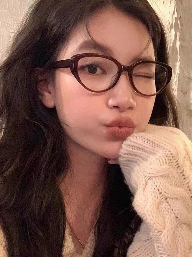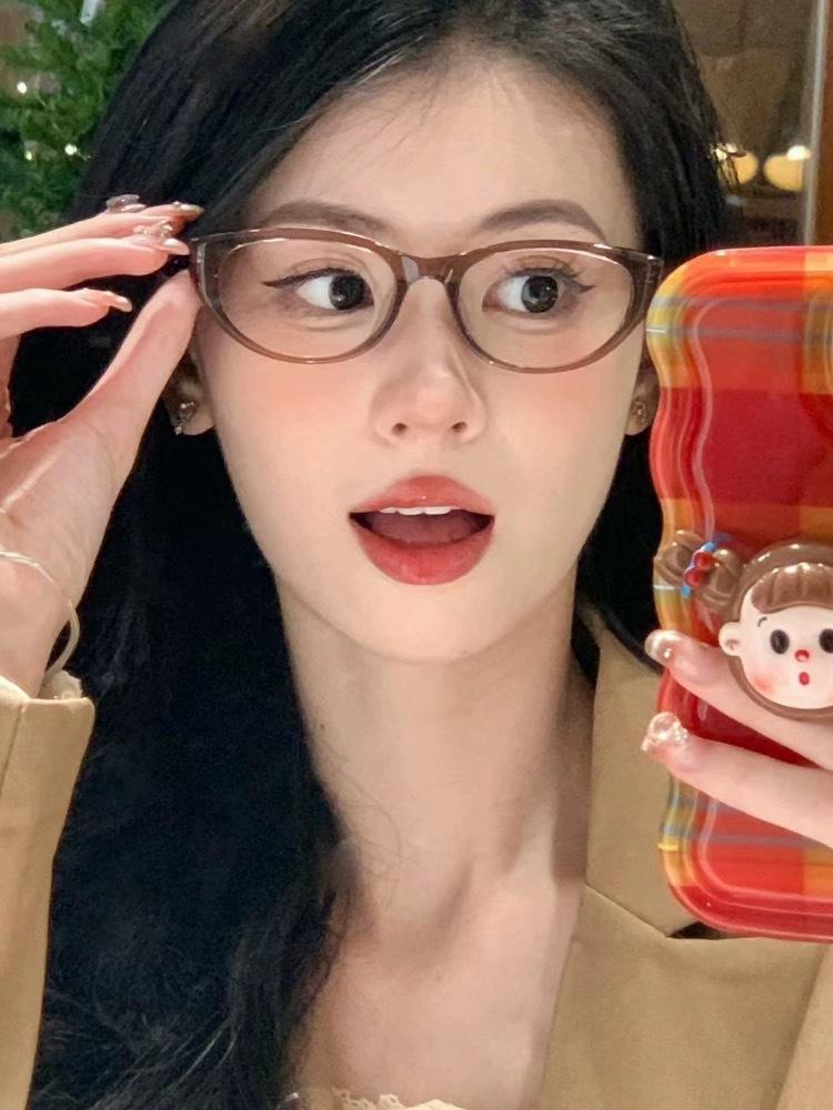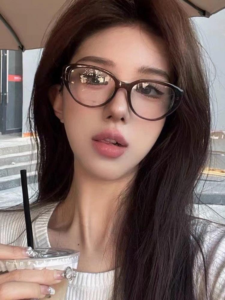 Gafas retro ojo de gato marrones anti luz azul luz plana pueden combinar número de miopía artefacto de belleza simple moda femenina montura TR90