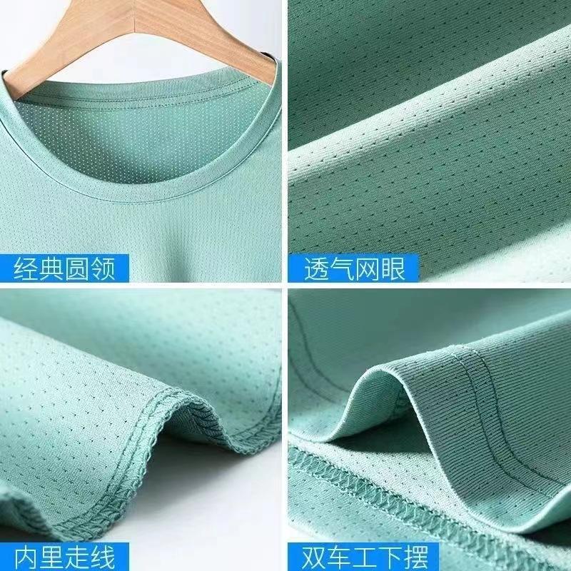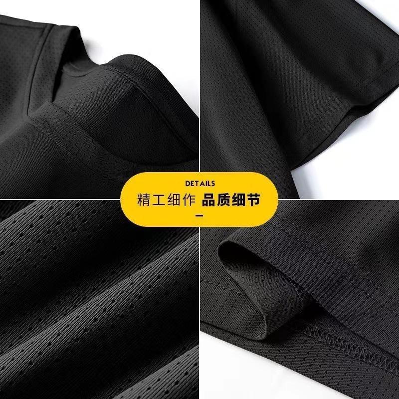 Camiseta de manga corta de secado rápido y fresca de seda de hielo para hombre, estilo nuevo de verano, de malla transpirable, de media manga, ajustada, fina y ligera.