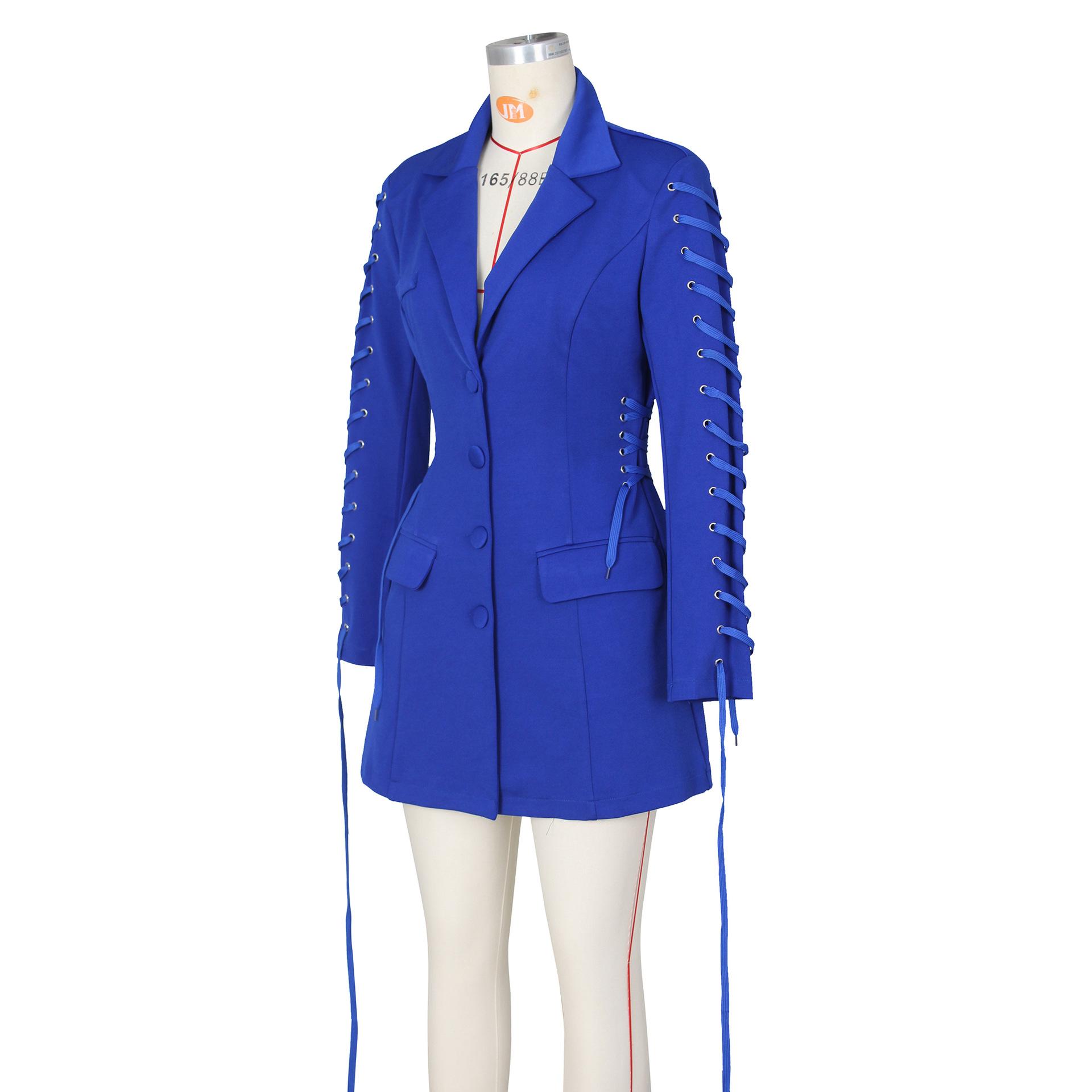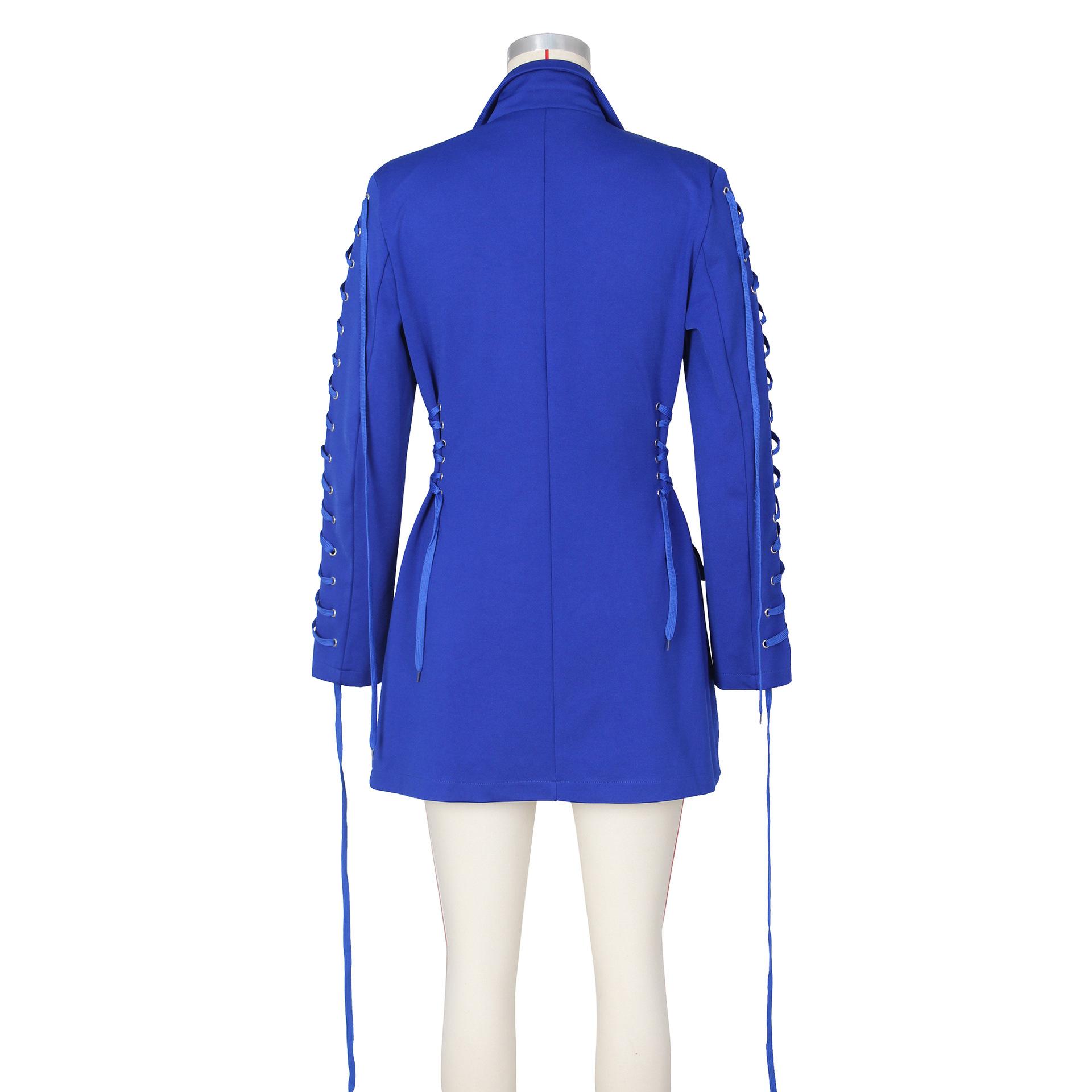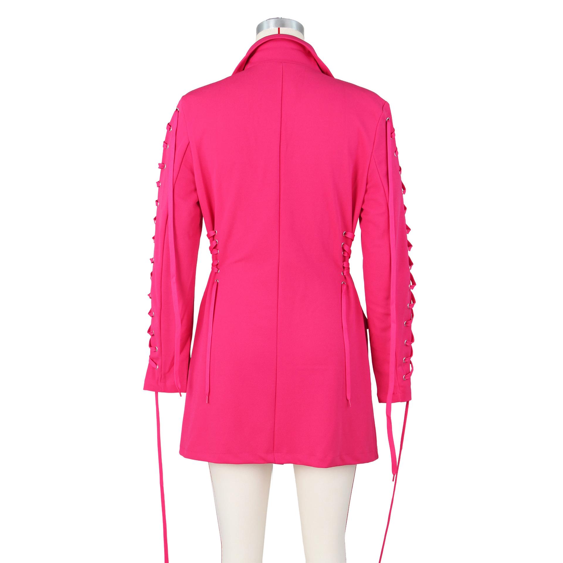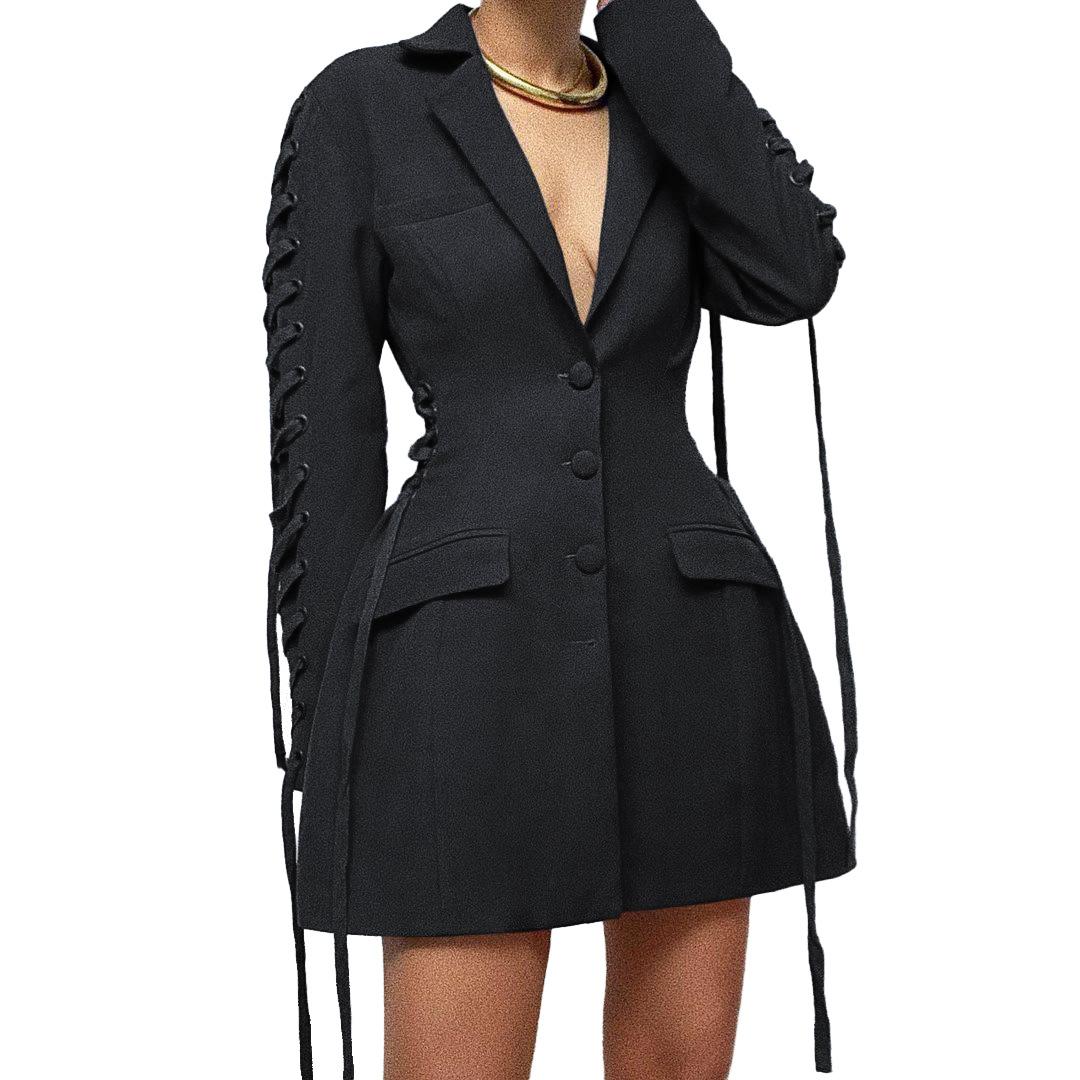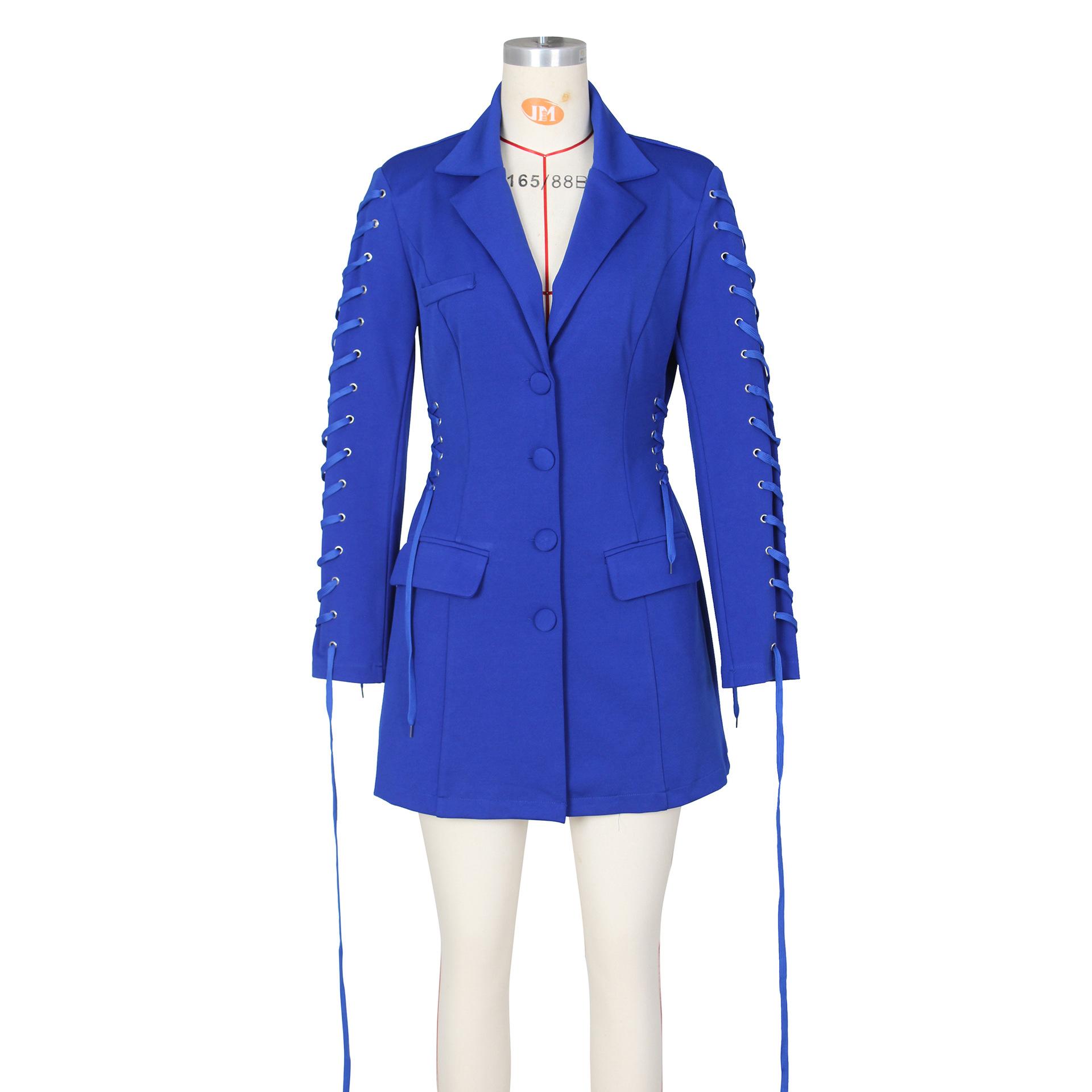 2023 Nuevo Traje de Chaqueta de Largo Medio con Cinturón Ajustable de Encaje para Mujer de Moda Europea y Americana