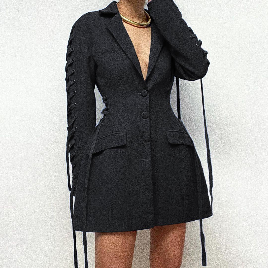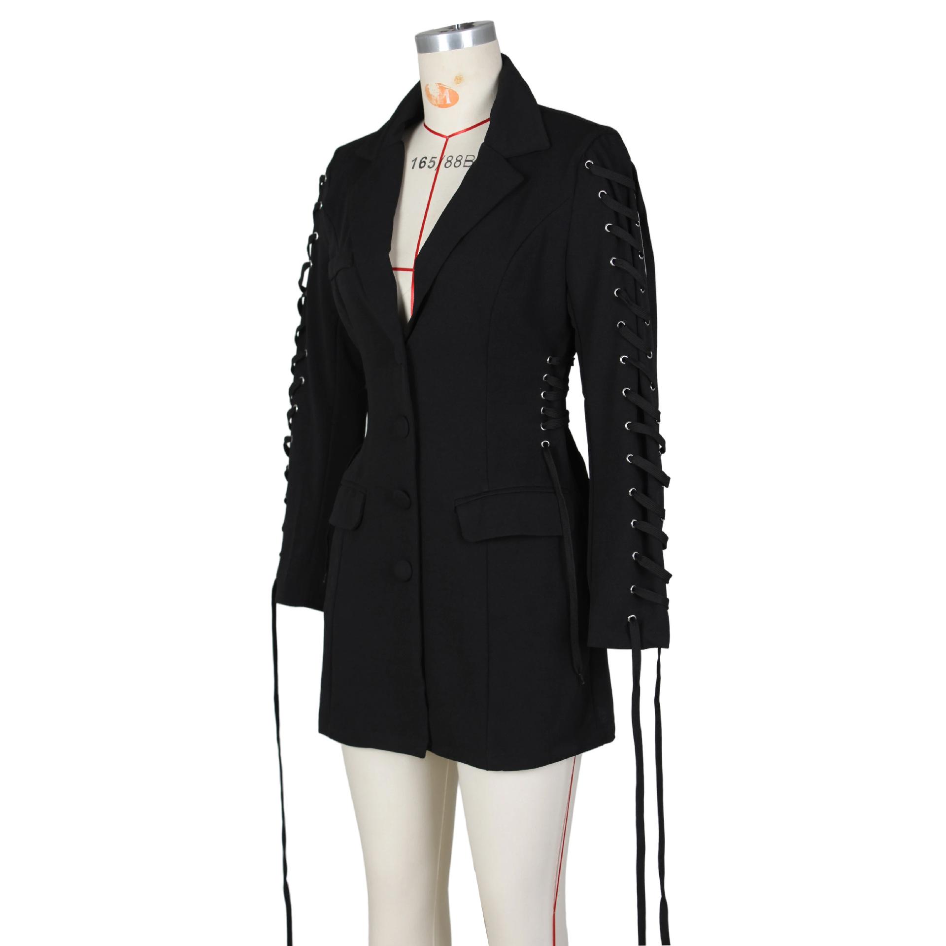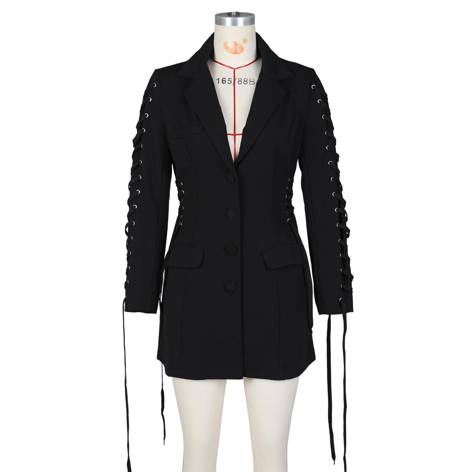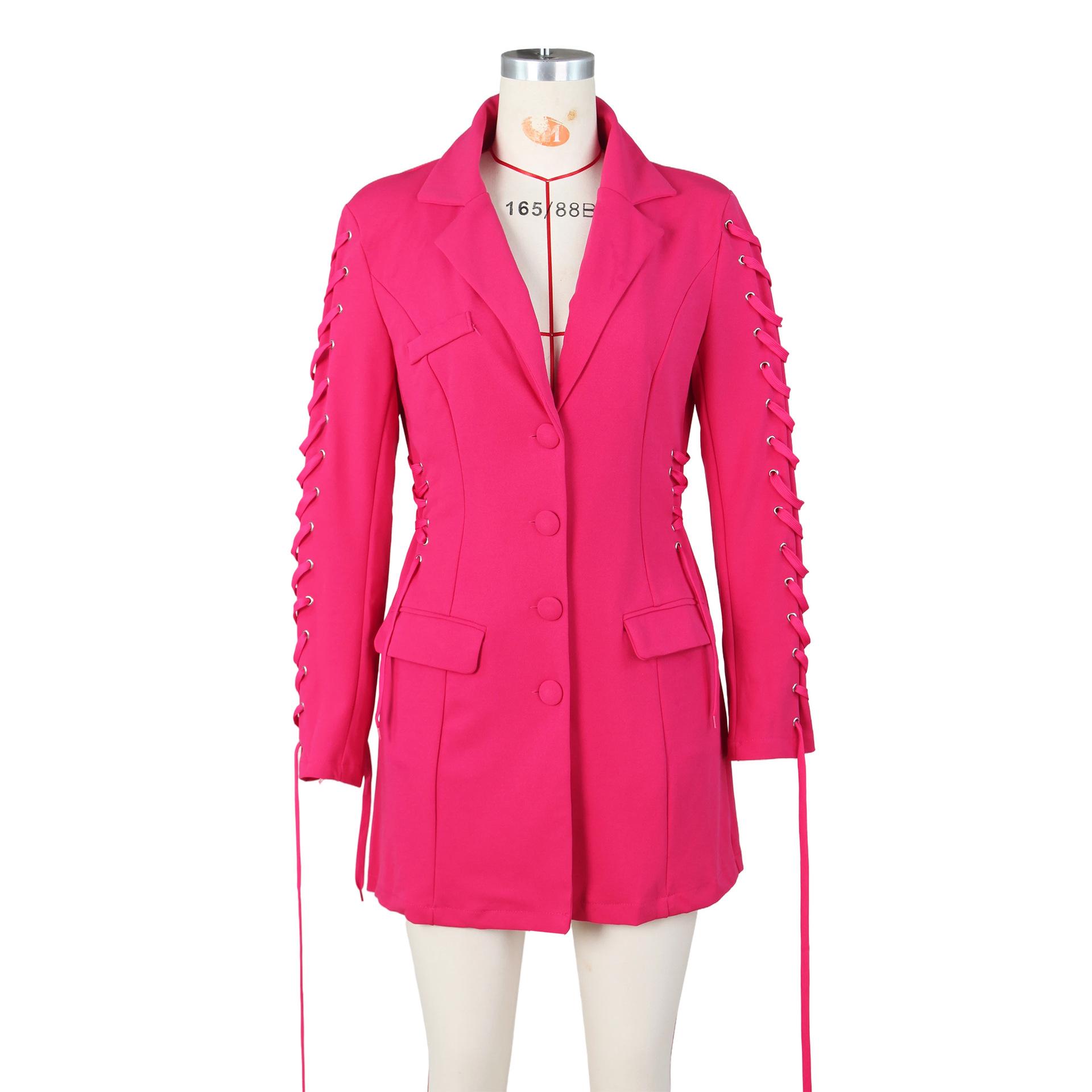 2023 Nuevo Traje de Chaqueta de Largo Medio con Cinturón Ajustable de Encaje para Mujer de Moda Europea y Americana