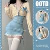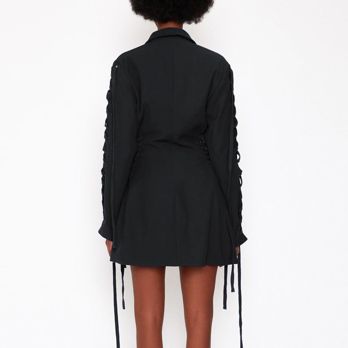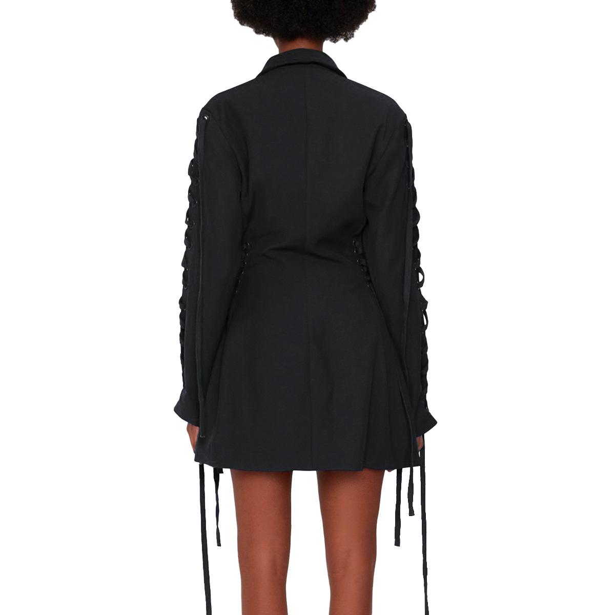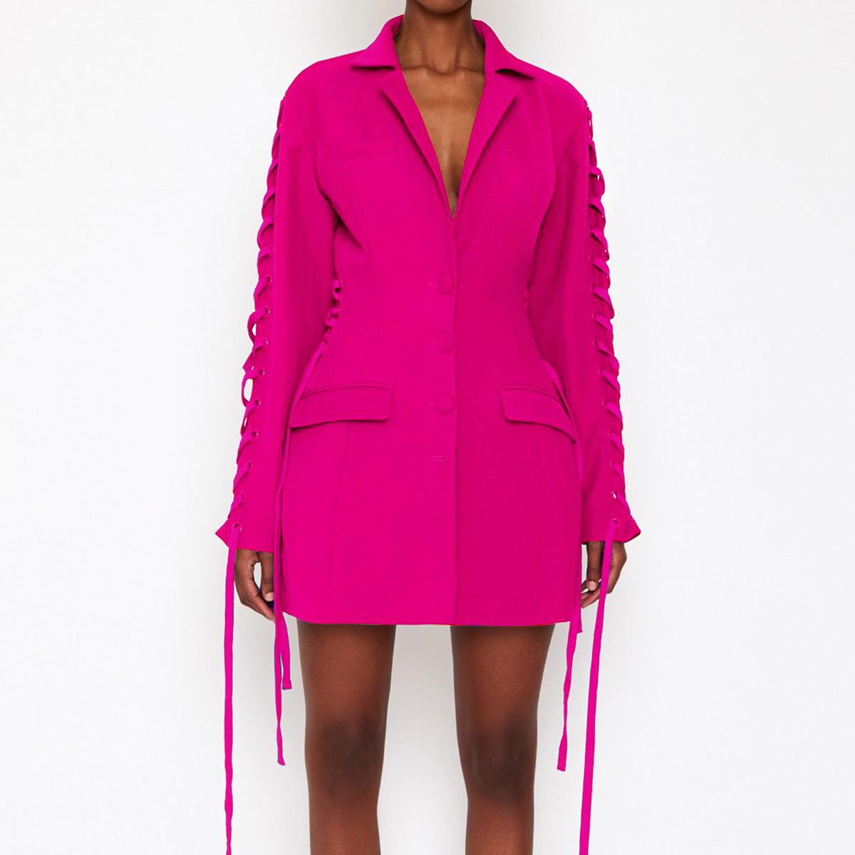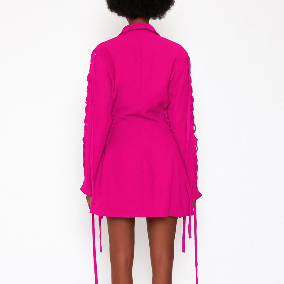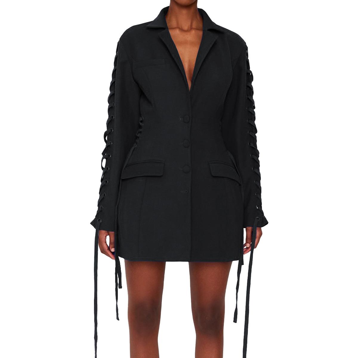 2023 Nuevo Traje de Chaqueta de Largo Medio con Cinturón Ajustable de Encaje para Mujer de Moda Europea y Americana