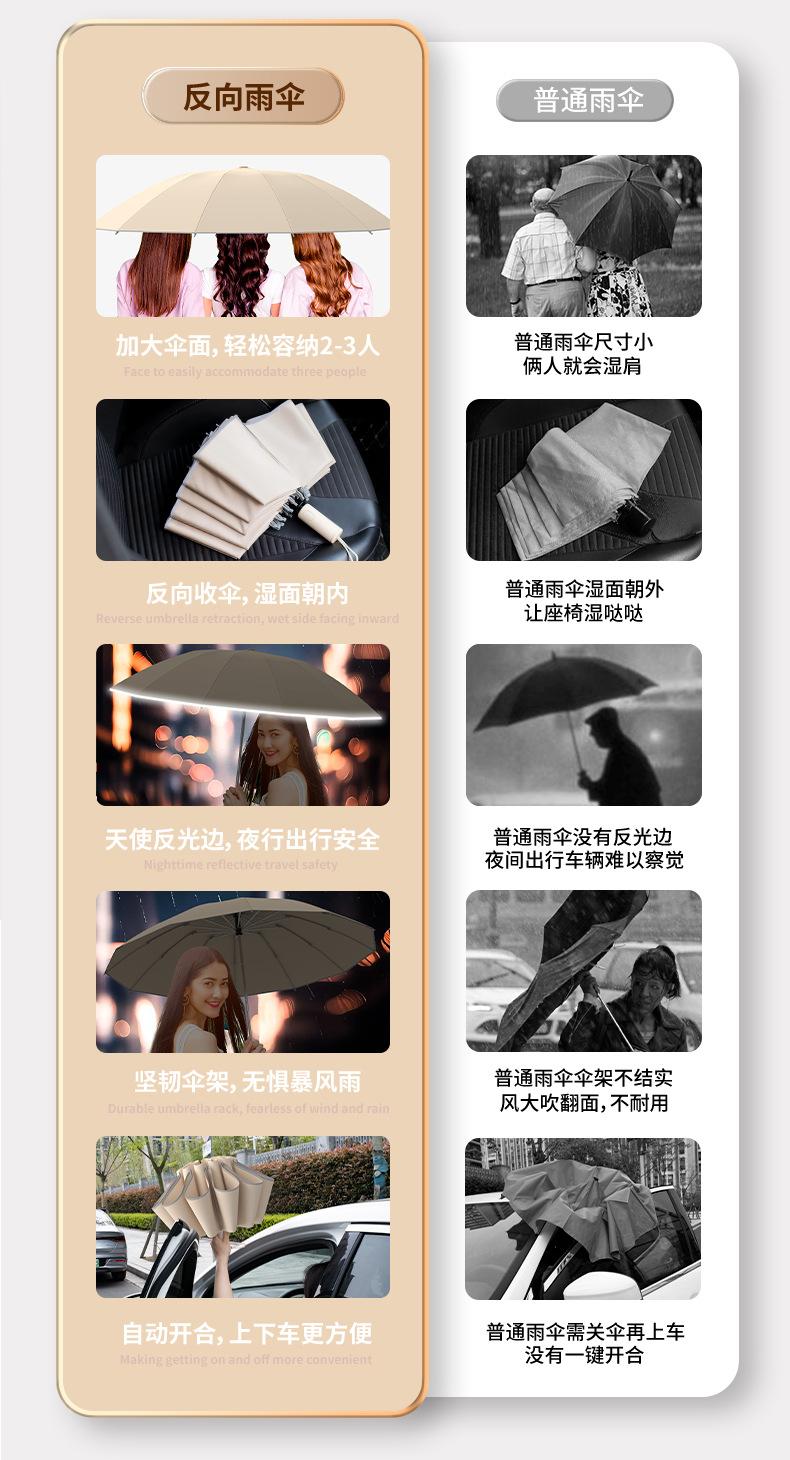 Paraguas plegable automático inverso, grande, reforzado y resistente, para mujer y hombre, resistente a la lluvia.