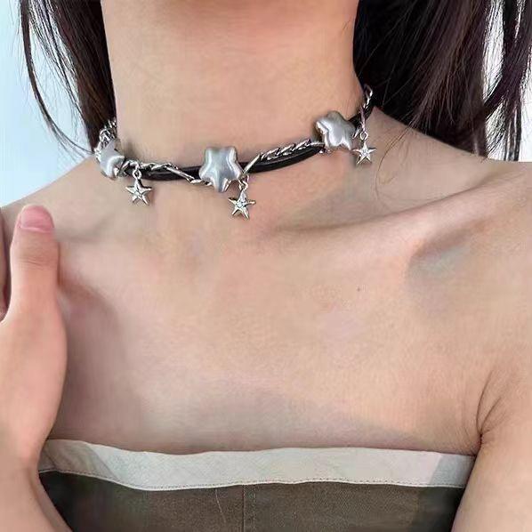 Estilo Frío Dulce Cool Chica Picante Estrella Gargantilla Cadena para el Cuello Nicho Sentido del Diseño Lujo Ligero Collar de Clavícula para Mujer Accesorios Collar