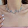Collar de perlas de doble capa con diseño de mariposa de cristal azul para mujer, estilo frío, cadena de clavícula apilada, cadena de lujo exquisita y ligera.