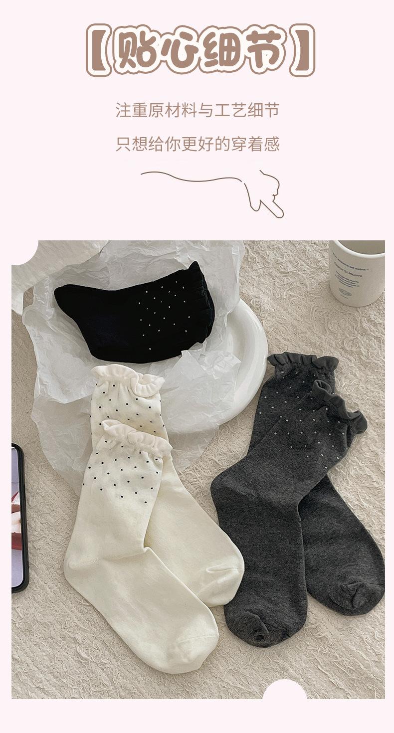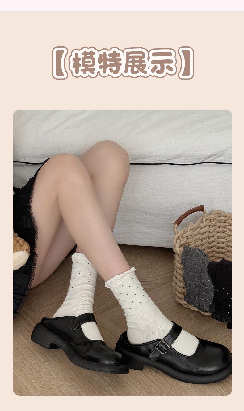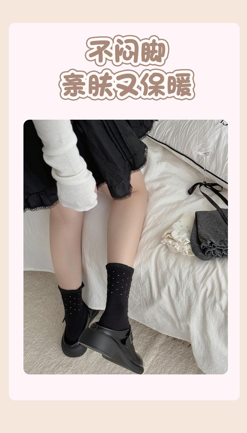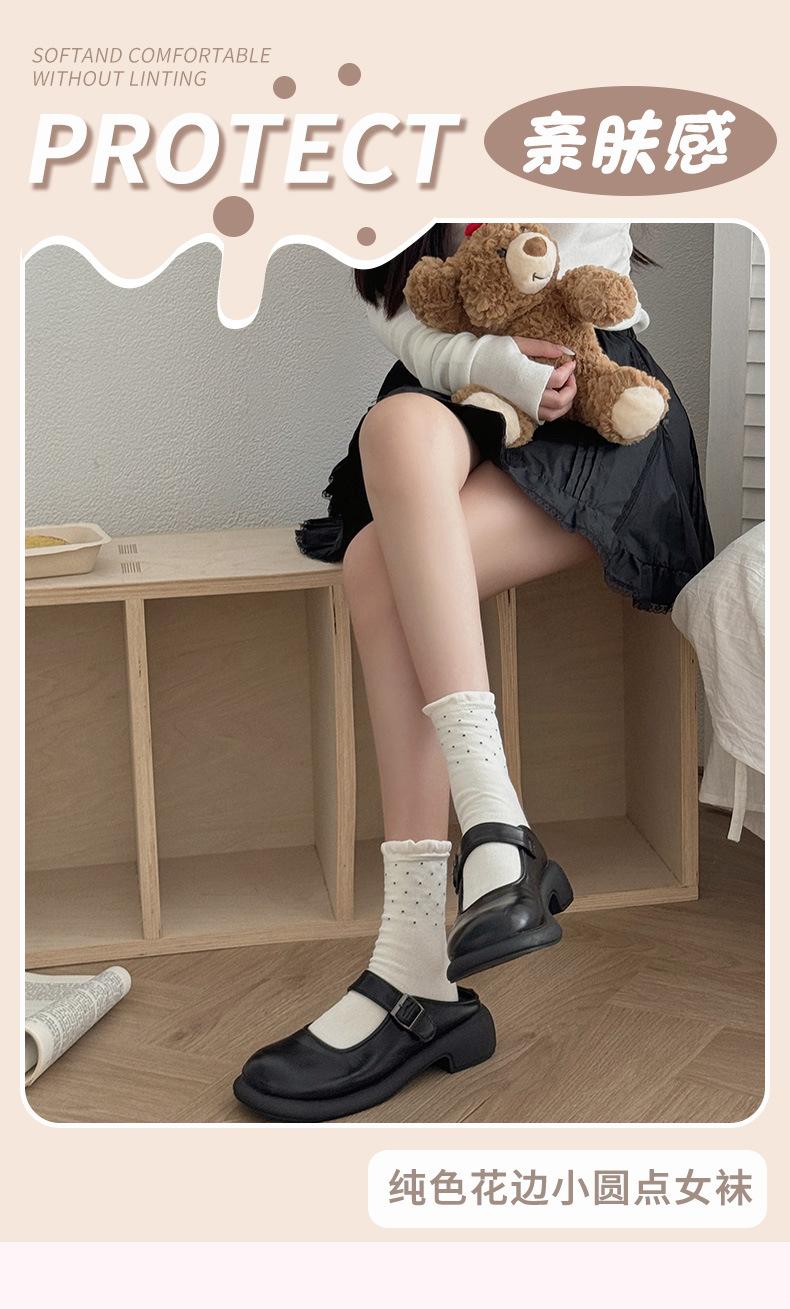 Calcetines Blancos para Mujer Otoño e Invierno Nueva Ola Lunares Calcetines de Media Caña Estilo Japonés Calcetines de Rizo con Encaje de Boca de Burbuja Calcetines de Lunares Pequeños para Mujer