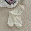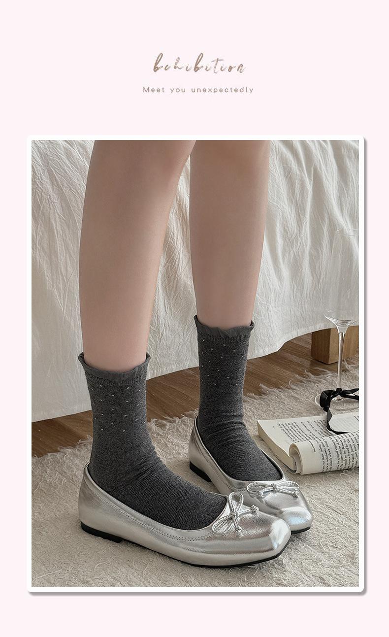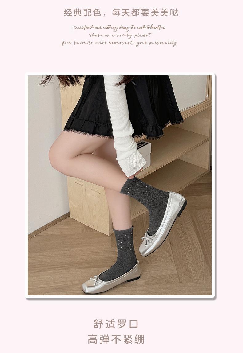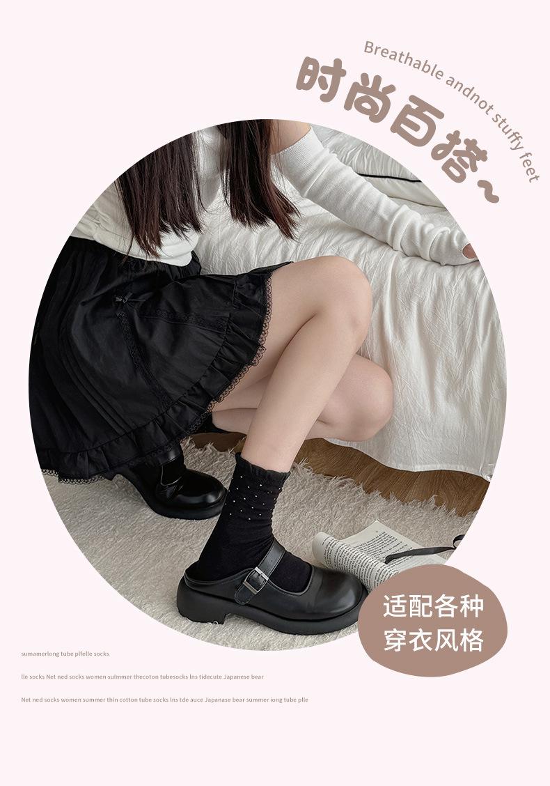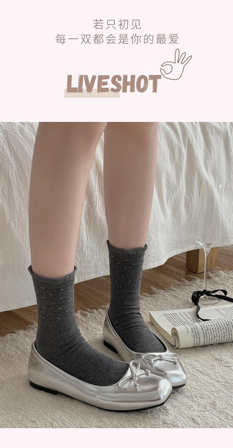 Calcetines Blancos para Mujer Otoño e Invierno Nueva Ola Lunares Calcetines de Media Caña Estilo Japonés Calcetines de Rizo con Encaje de Boca de Burbuja Calcetines de Lunares Pequeños para Mujer