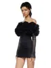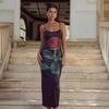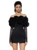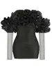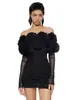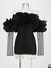 Nuevo Vestido Sexy Strapless Decorativo de Flores para Mujer Europeo y Americano Transfronterizo Perspectiva Malla Manga Larga Vestido Ajustado a la Cadera