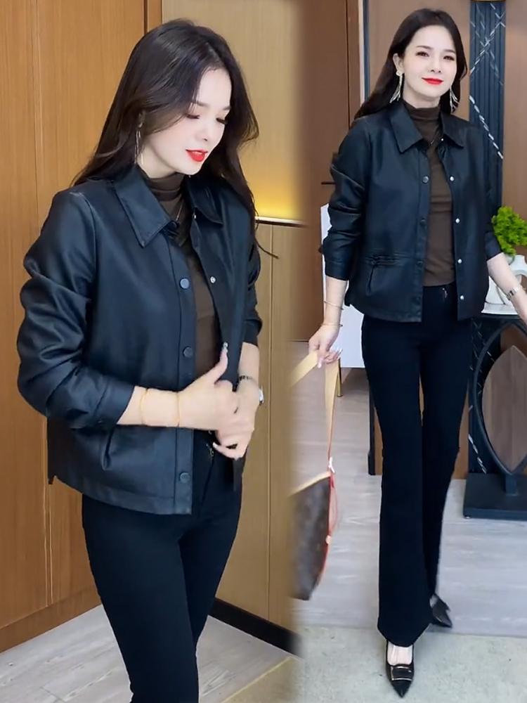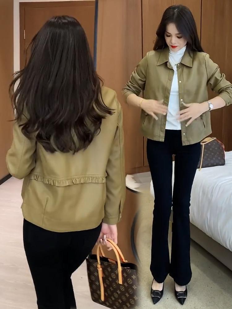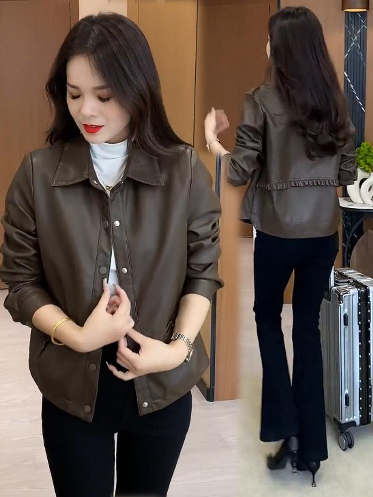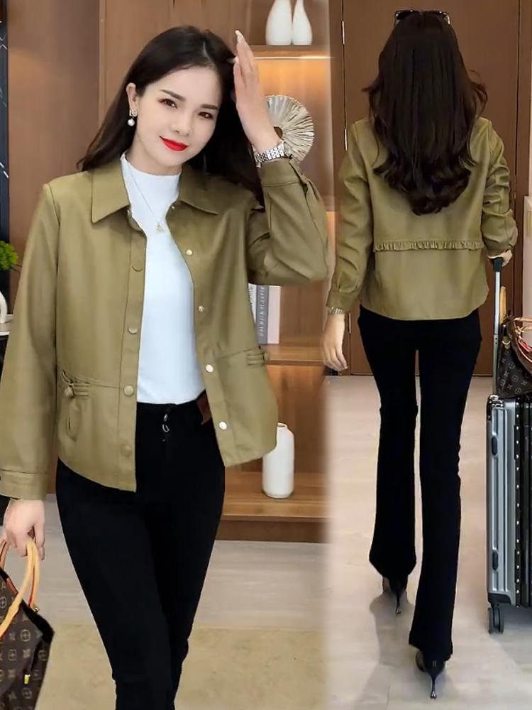 Chaqueta Corta de Cuero para Mujer 2025 Otoño Nueva Elegante Suelta Slim Versátil Chaqueta de Cuero PU a la Moda