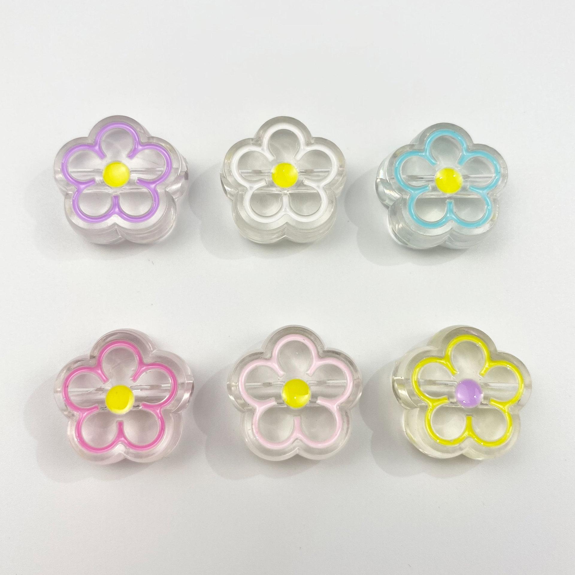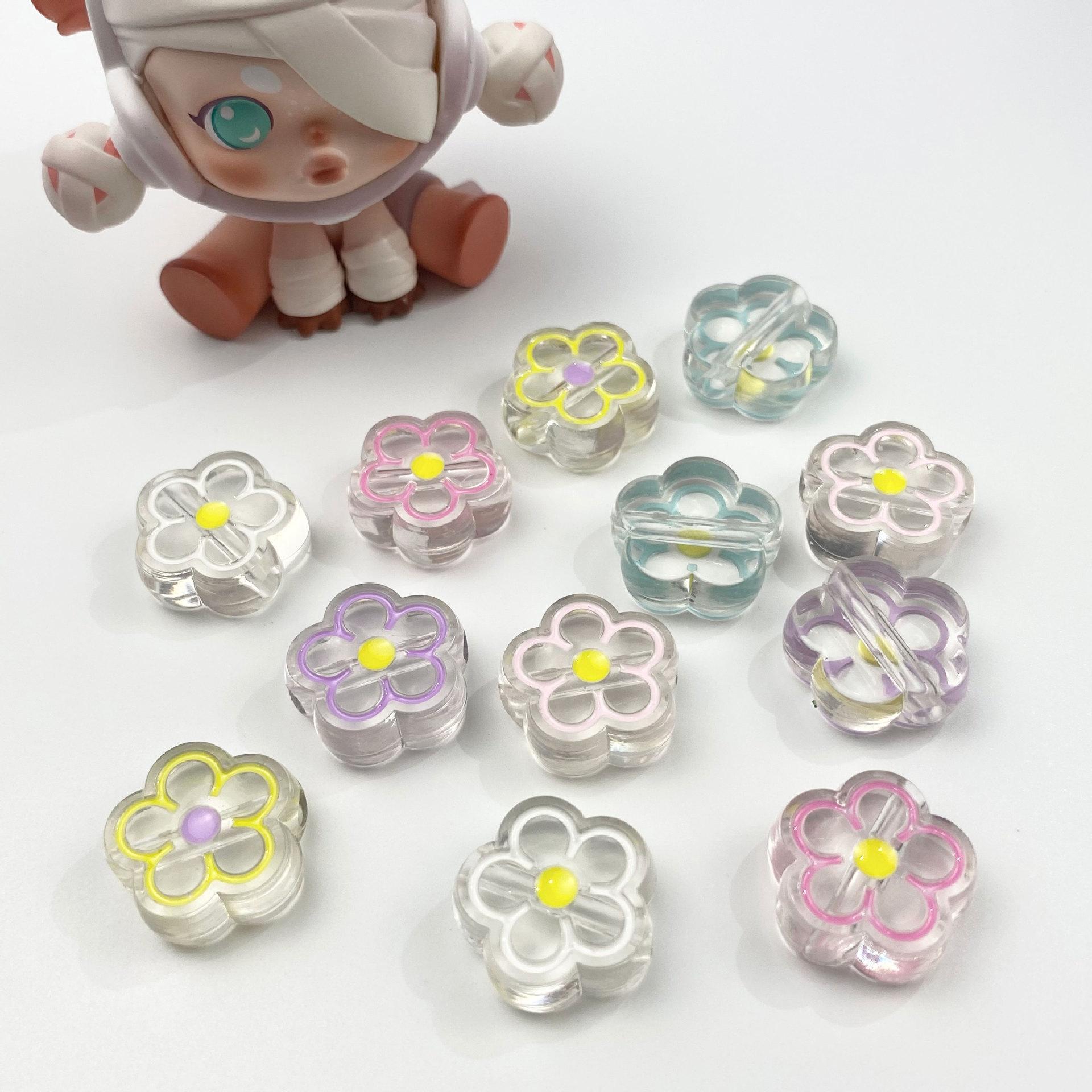 Accesorios de joyería DIY, acrílico transparente, aceite goteando flores, cuentas sueltas perforadas, cadena para teléfono móvil, cuerda para el cabello, accesorios para el cabello, material