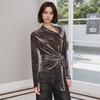 Camisa de manga larga para mujer, elegante, de color liso, con solapa suelta y combinable, para otoño 2024, estilo europeo y americano