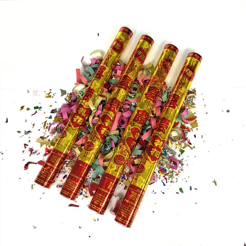 Instrucciones de uso: Los fuegos artificiales y salvas se utilizan ampliamente en diversas actividades festivas, como ceremonias de inauguración, bodas, eventos culturales y deportivos, fiestas y carnavales. Utilizan papel de flores de plástico de colores como material y gas comprimido como combustible. No contaminan y se liberan de forma segura.