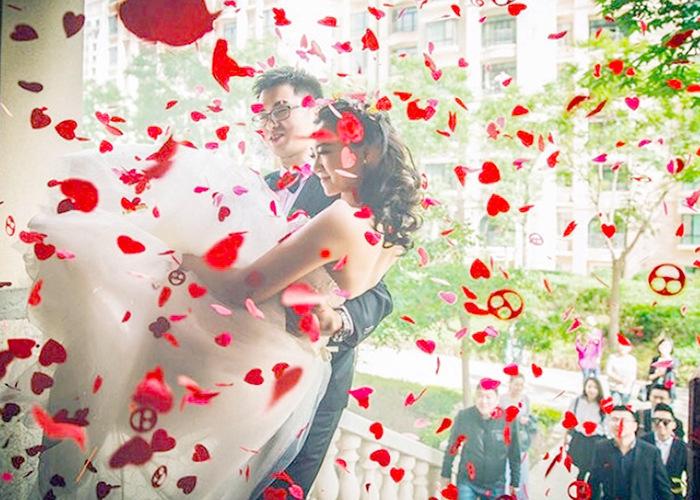 Es espectacular, y la escena parece estar en un mar de papel de flores, lo que puede resaltar fuertemente el ambiente festivo.