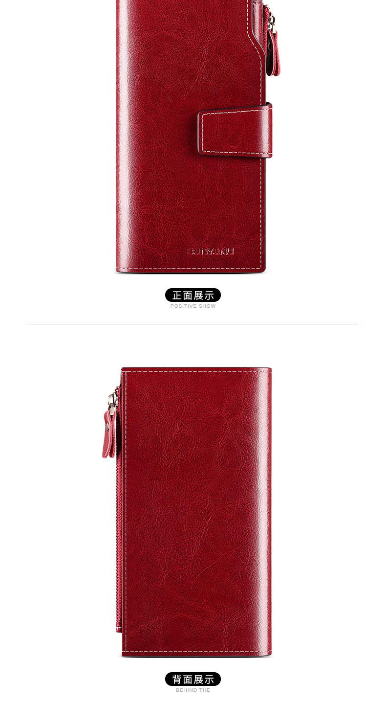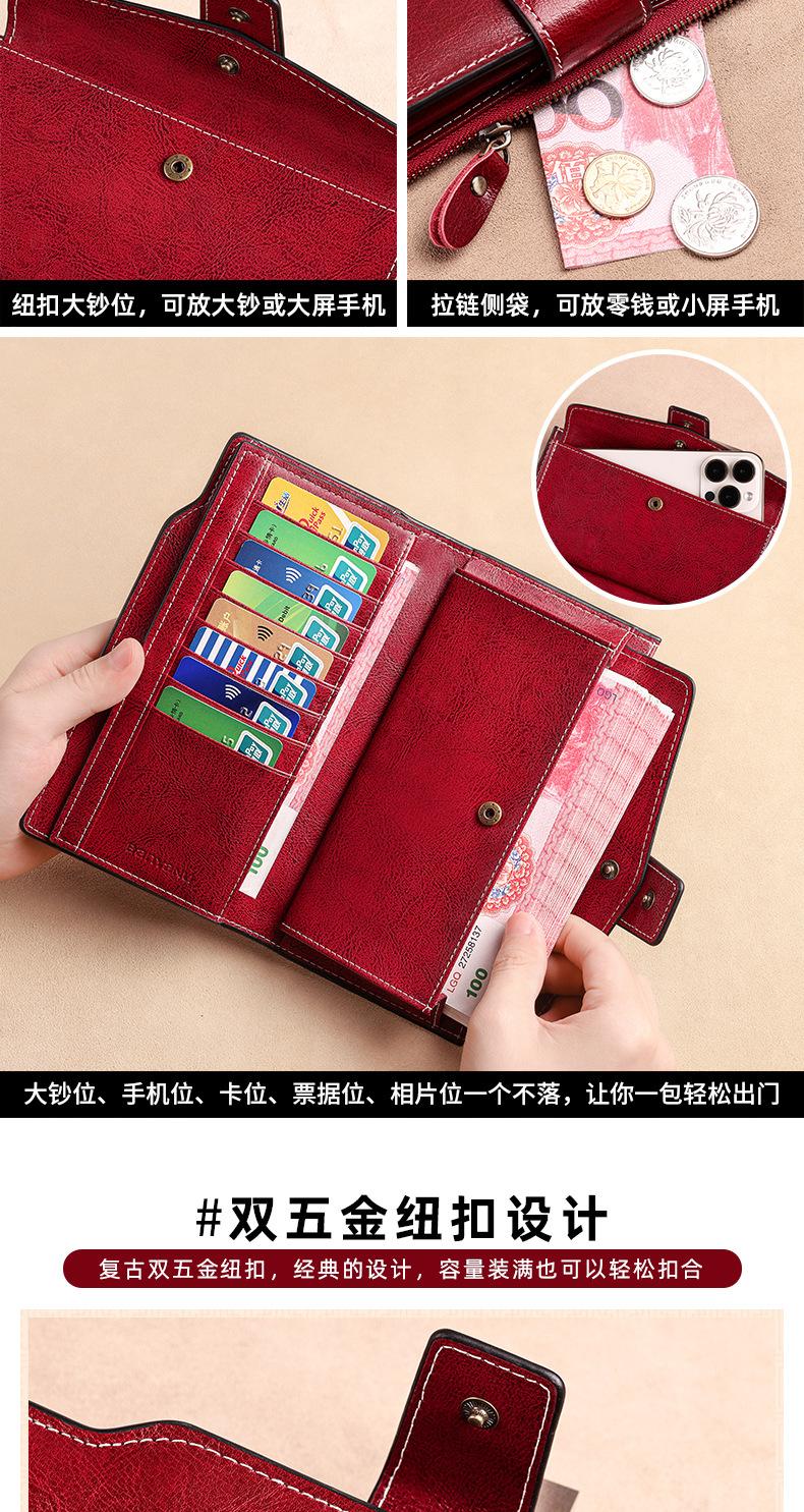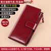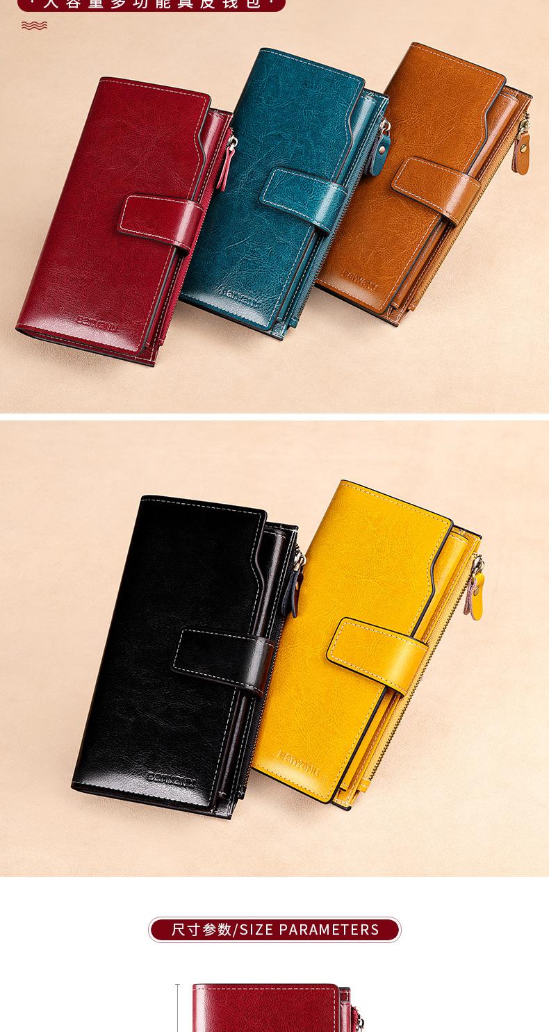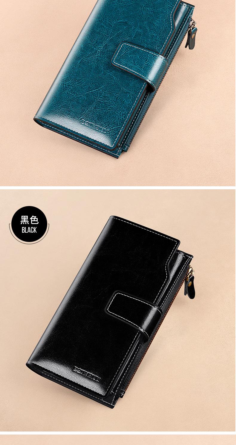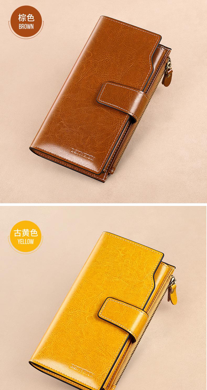 Billetera Larga de Cuero para Mujer Europea y Americana Transfronteriza Amazon con Protección RFID Anti-escaneo, Cuero Vacuno Encerado al Aceite, Billetera para Mujer, Tarjetero
