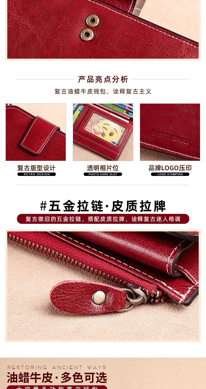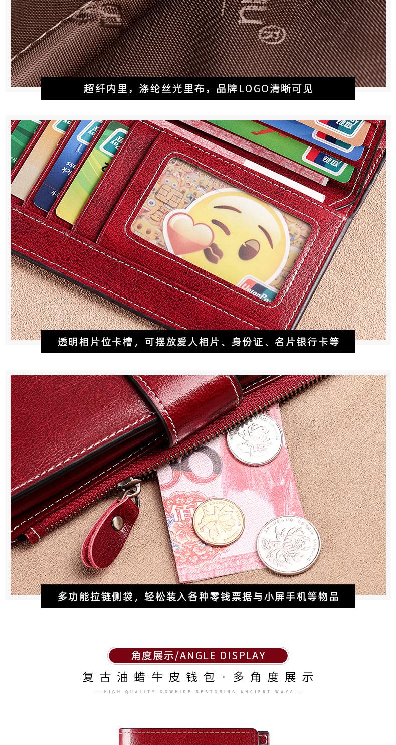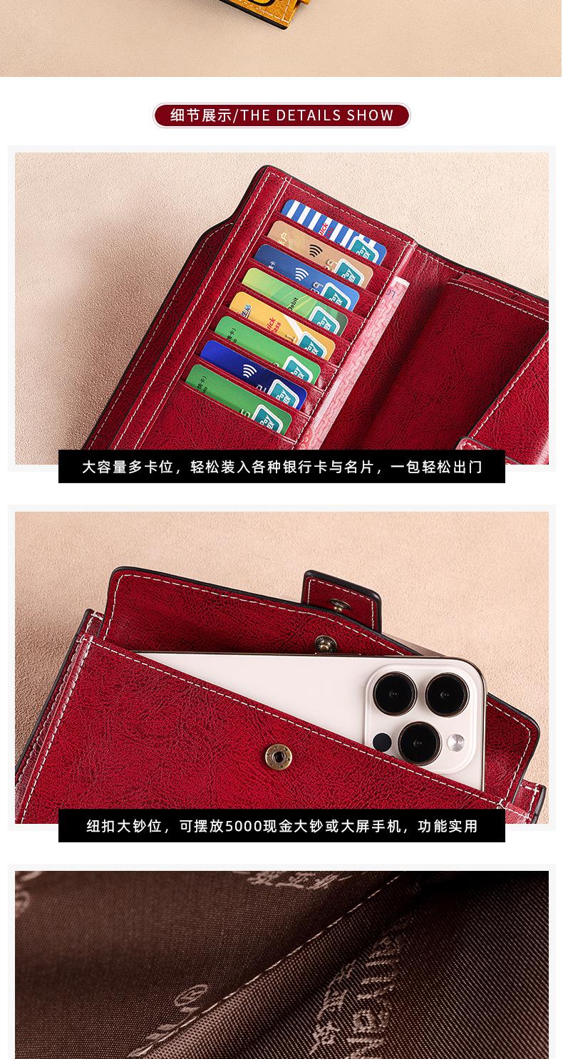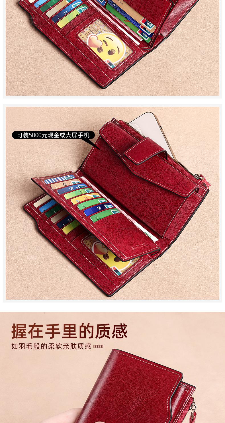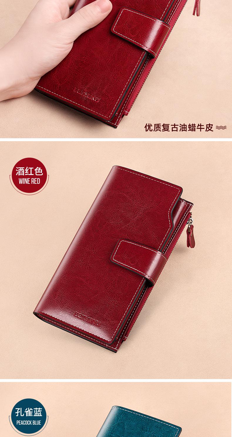 Billetera Larga de Cuero para Mujer Europea y Americana Transfronteriza Amazon con Protección RFID Anti-escaneo, Cuero Vacuno Encerado al Aceite, Billetera para Mujer, Tarjetero