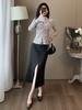 Traje informal de moda occidental para mujer, elegante conjunto de dos piezas con top y falda ajustados de estilo diosa primaveral.
