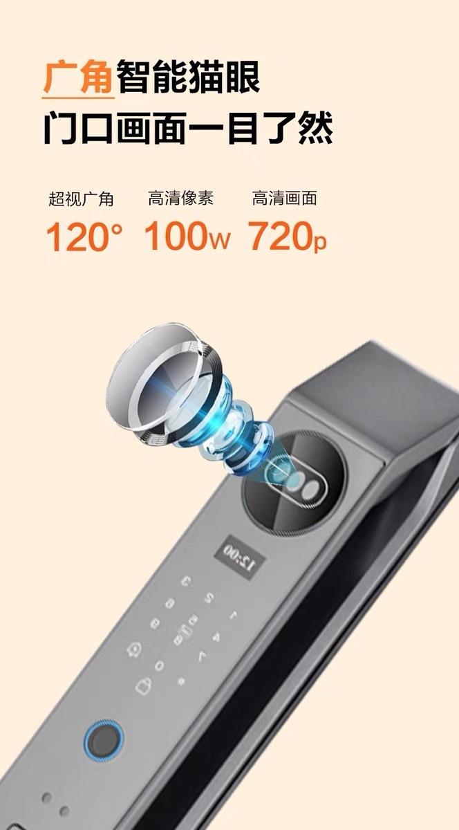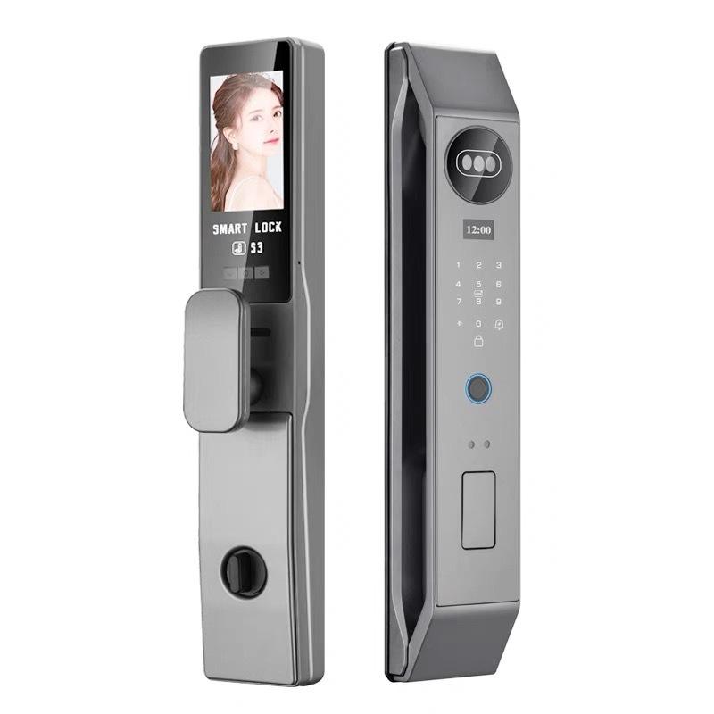 Cerradura de puerta inteligente completamente automática con reconocimiento facial, cerradura de seguridad para el hogar con contraseña, monitoreo visual, cerradura de huella dactilar remota con ojo de gato