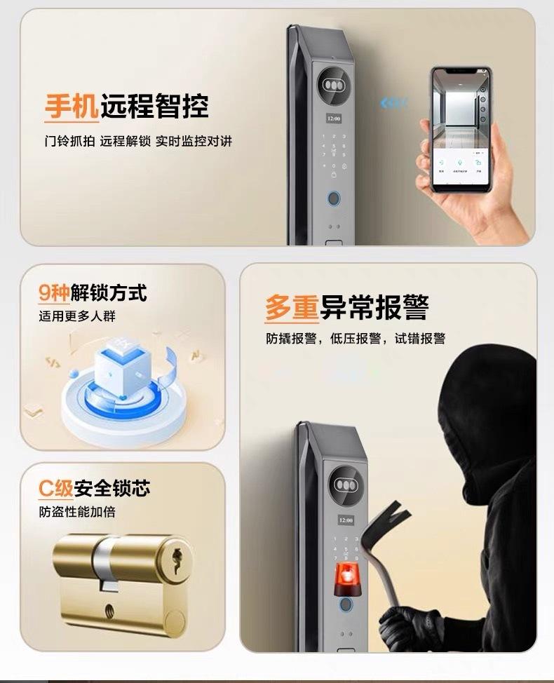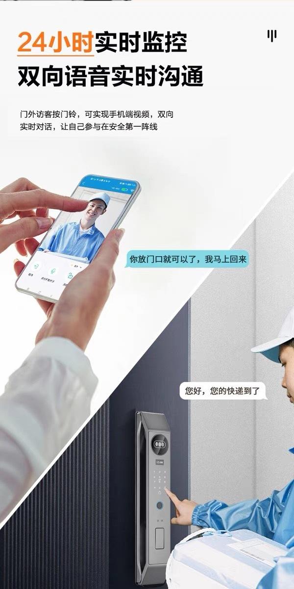 Mobile phone video intercom + face recognition dual batteries, 240*24 lock body, 240*30 lock body, Installatio...