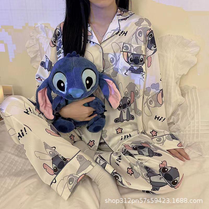 Pijamas de primavera y otoño para mujer, nuevos dibujos animados con estampado de alta apariencia, estilo coreano, cárdigan de manga larga para dormitorio, traje para el hogar