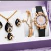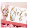 Set de regalo creativo elegante para damas reloj de diamantes + pulsera + anillo + aretes + collar 5 piezas/set
