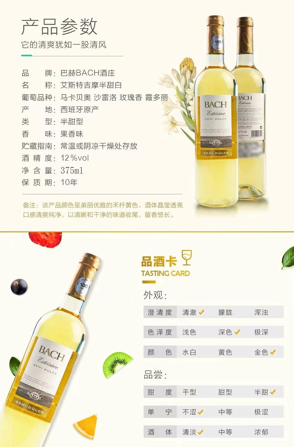 Vino Bach original de la mansión Bach, vino blanco semidulce importado, vino dulce para damas.