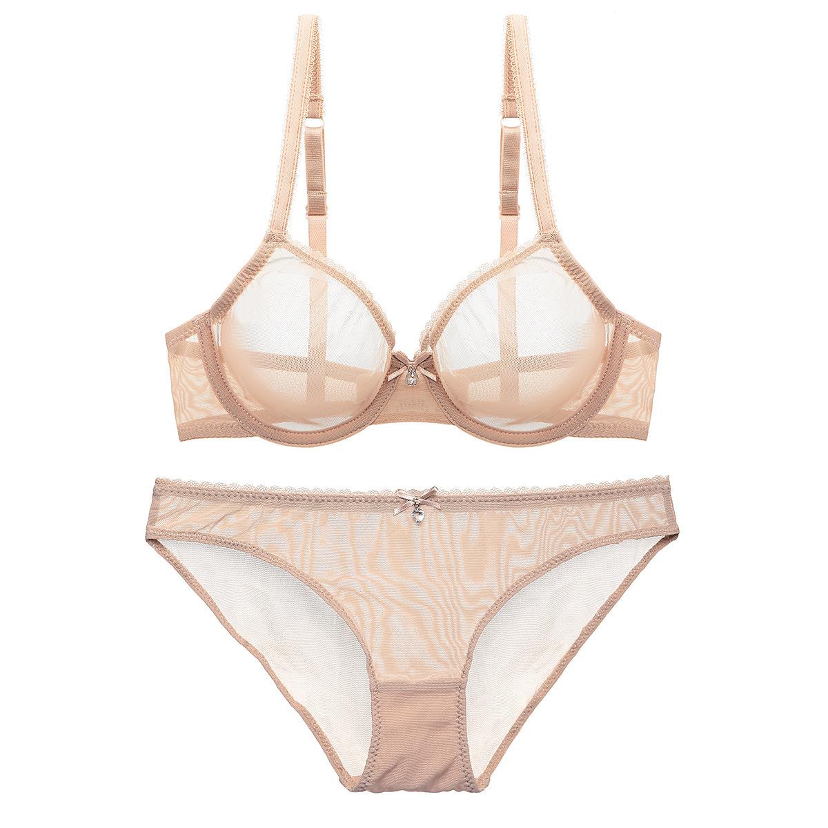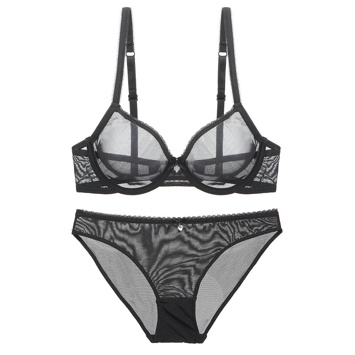 Conjunto de sujetador de mujer de malla fina transparente y ropa interior sexy europea y americana de una generación de cabello