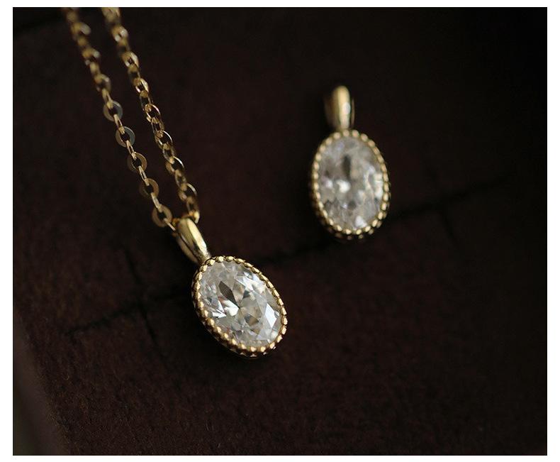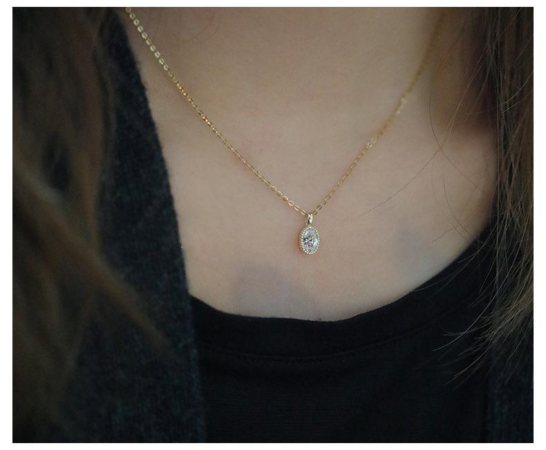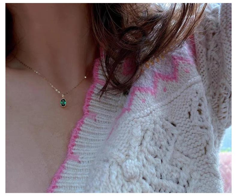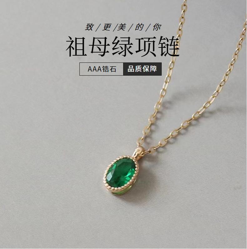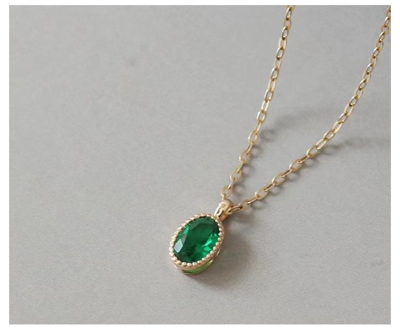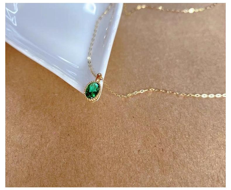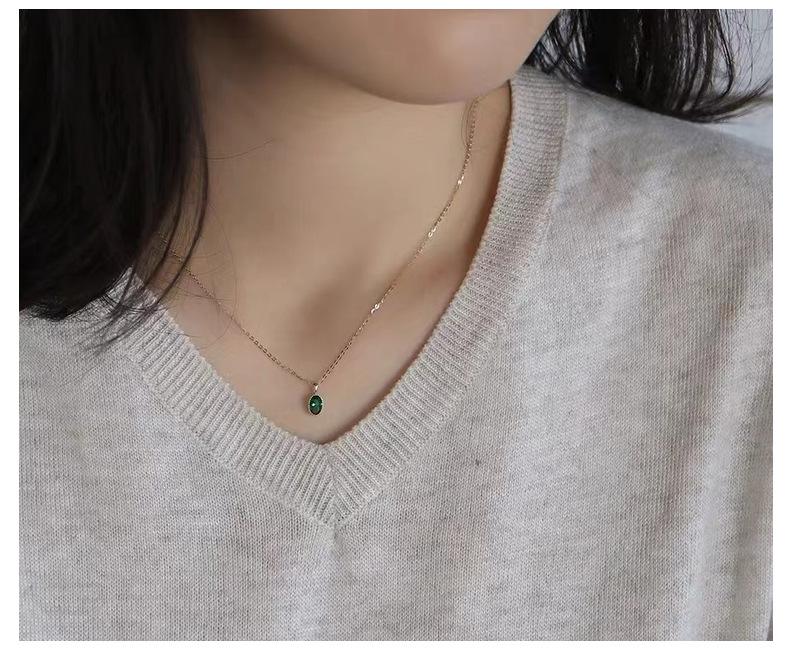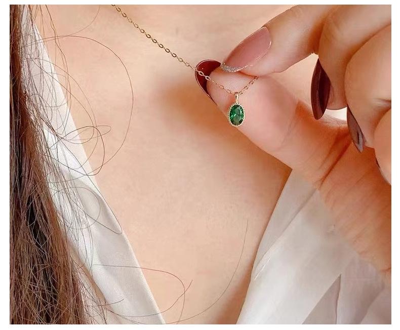 Collar de lujo ligero con colgante de esmeralda ovalada con incrustaciones para mujer, bañado en oro de 14 quilates y plata de ley S925, con diseño de nicho, cadena para clavícula.